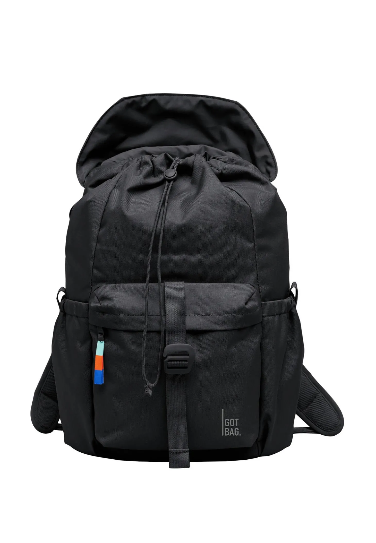 - Zwei elastische Seitenfächer für Flaschen