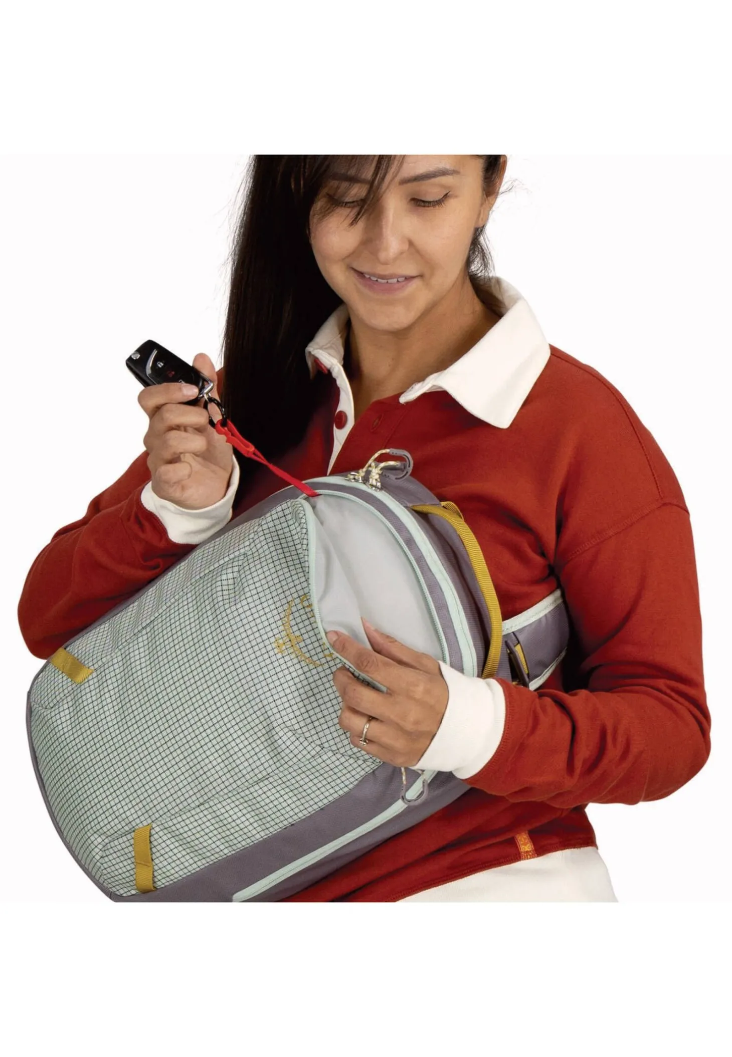- Reißverschlussfach außen mit Schlüsselclip