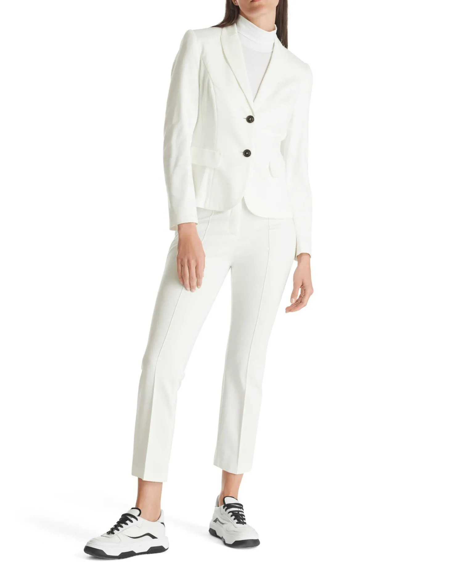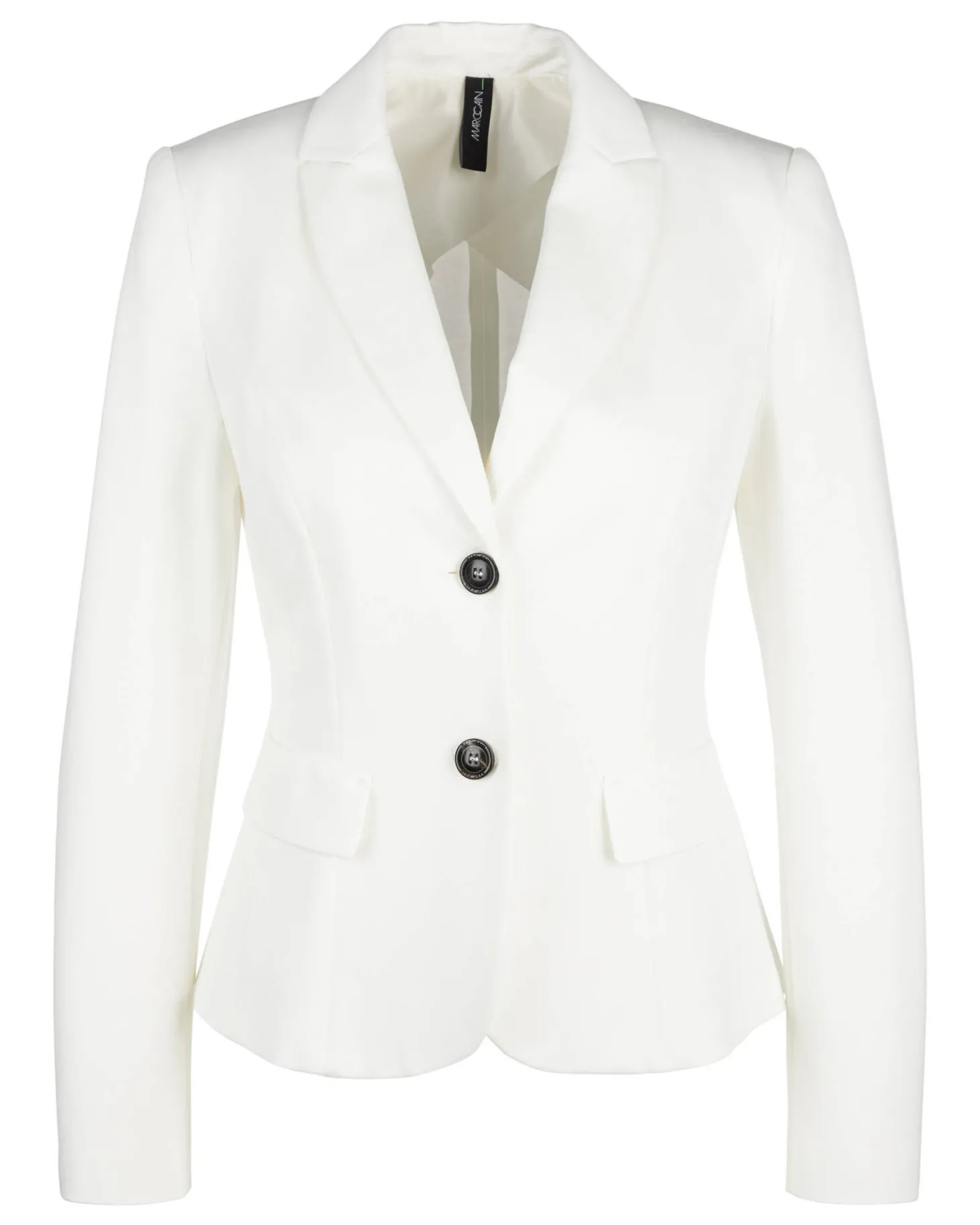 Blazer aus hochwertigem Jersey mit schmalem Revers und angedeuteten Klappentaschen. Der Blazer wird vorne mittig mit zwei Knöpfen geschlossen. Die Ärmel sind gefüttert.