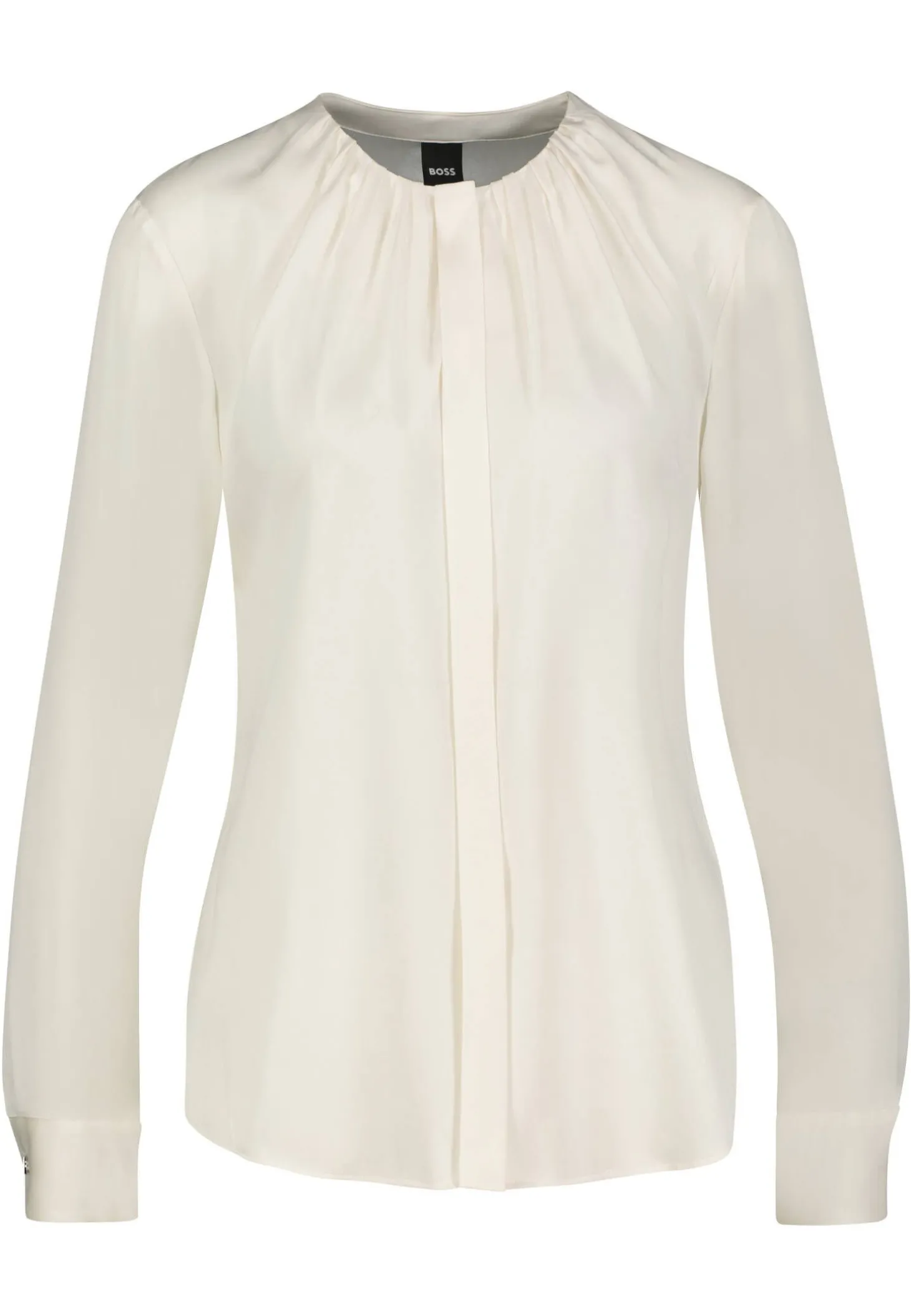 Elegante Business-Auftritte gelingen mit der Bluse Banorah von BOSS aus edlem, elastischem Seidensatin garantiert.