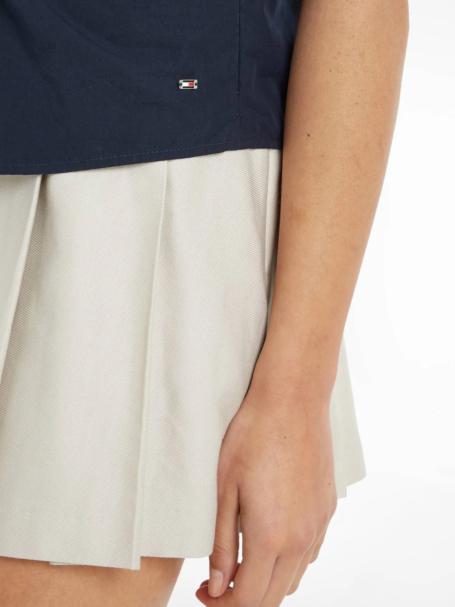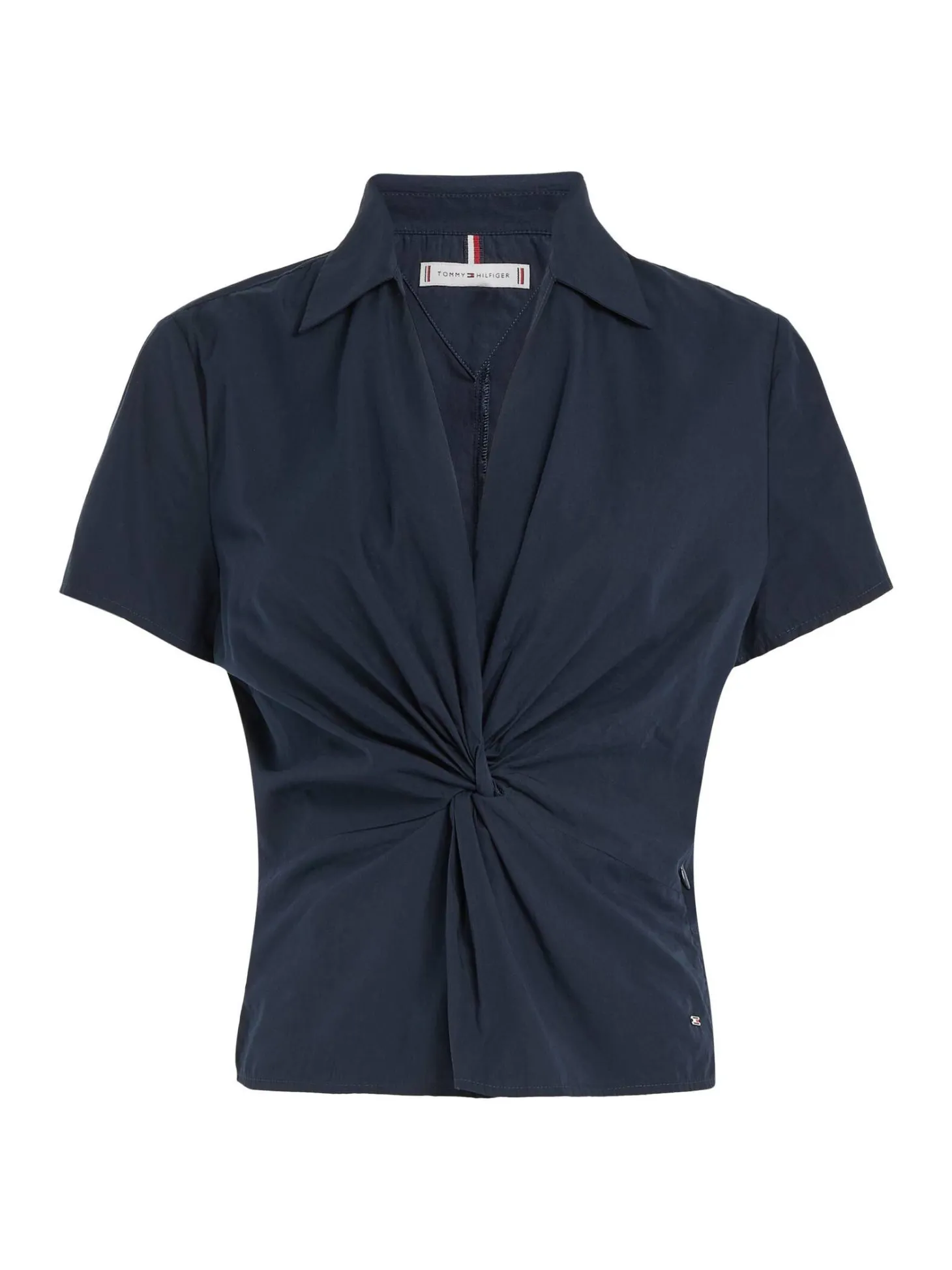 Kurzärmlige Bluse von Tommy Hilfiger aus angenehm komfortabler Baumwoll-Popeline mit blickfangender Drapierung unterhalb der Brust.