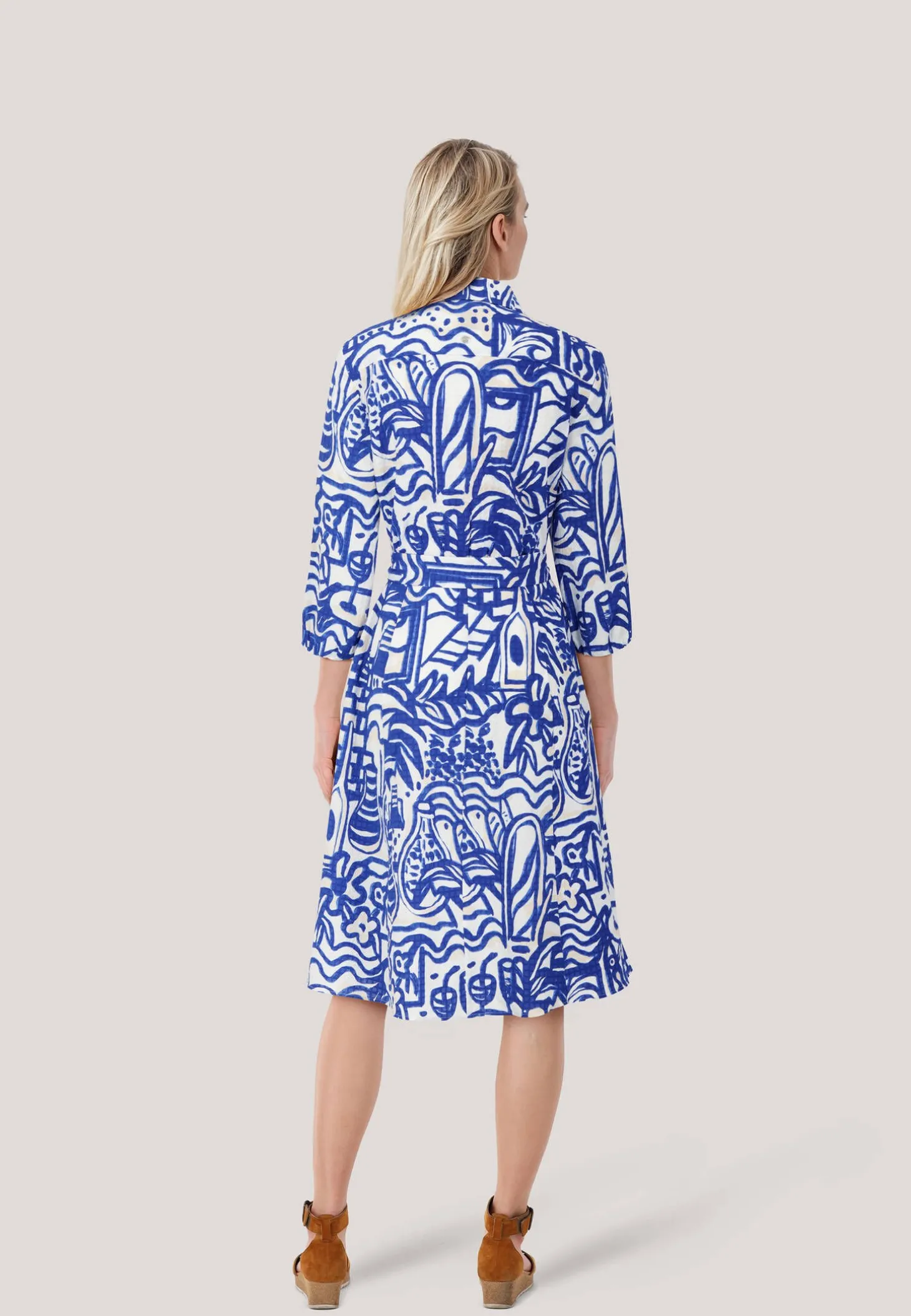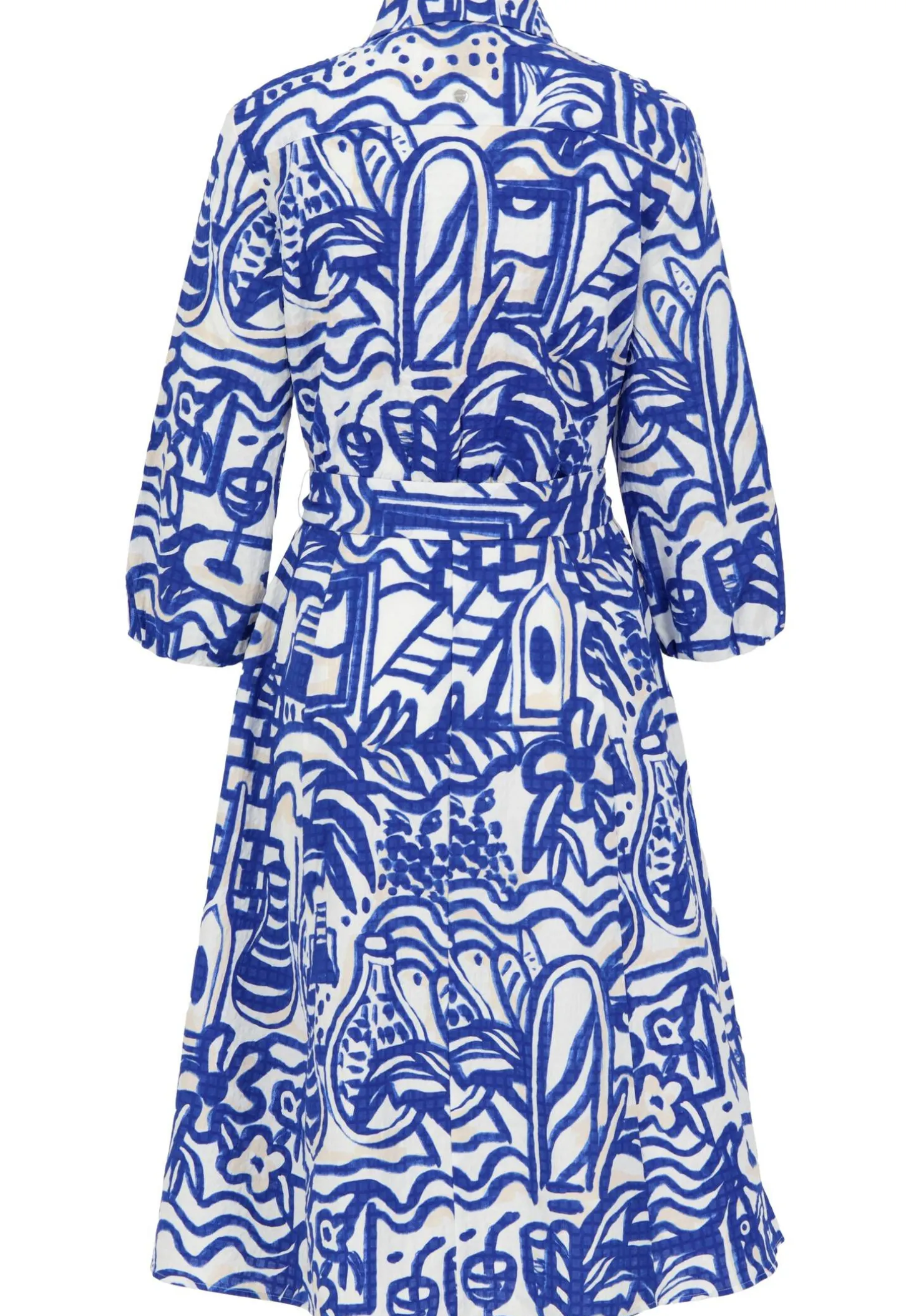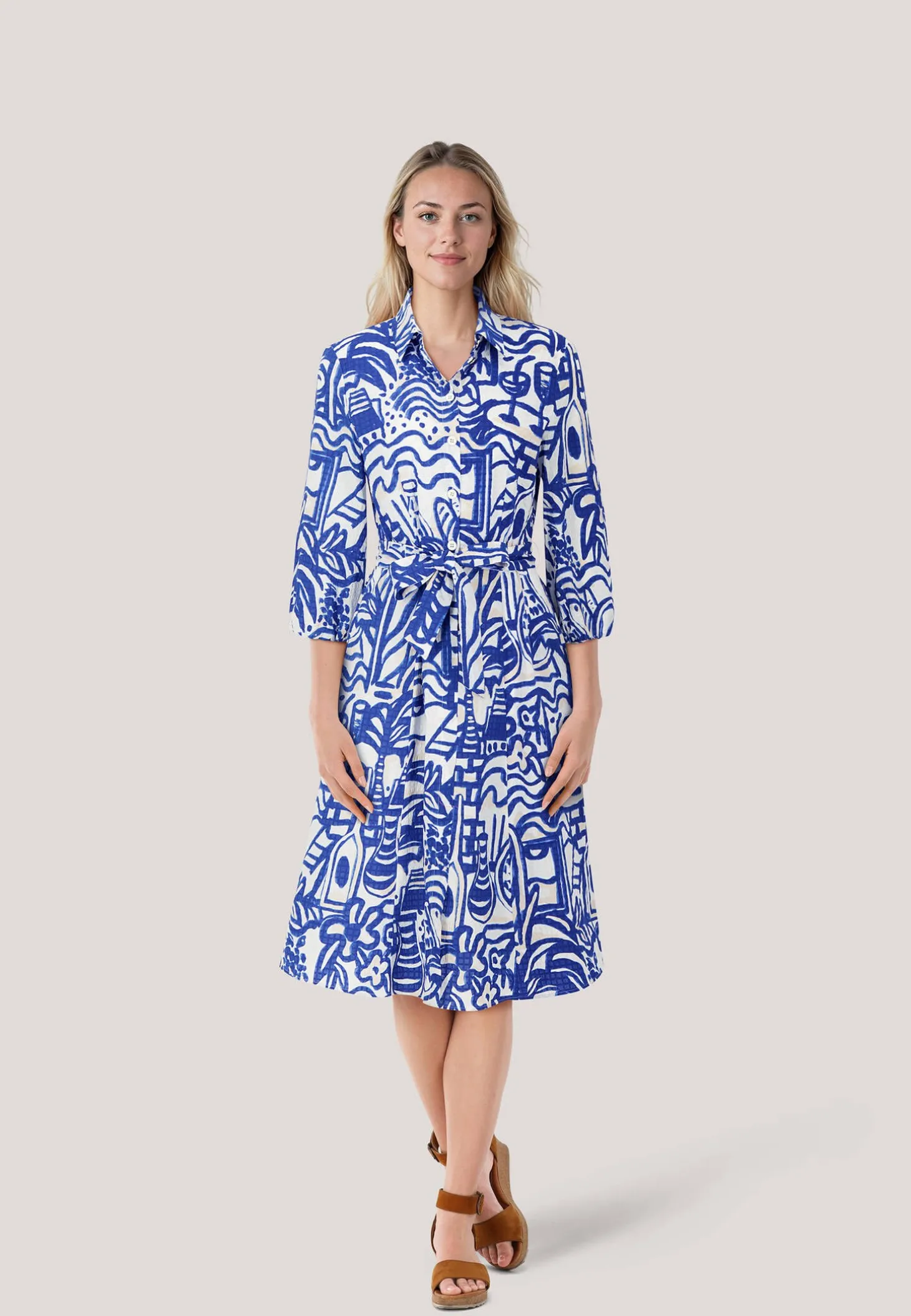 Locker-flowiges Urlaubsambiente ist bei diesem Hemdkleid inbegriffen. Denn mit seinem Francis-Print wirkt es wie ein gemaltes Kunstwerk aus dem Süden Frankreichs. Gefertigt aus strukturierter Baumwolle, besticht es zudem mit seinem exklusiven Touch. Das Kleid hat eine Knopfleiste, halblange Ärmel und den typischen Kragen. Der knielange Rock ist ausgestellt. Ein Bindegürtel bringt die Silhouette in die taillierte Form.