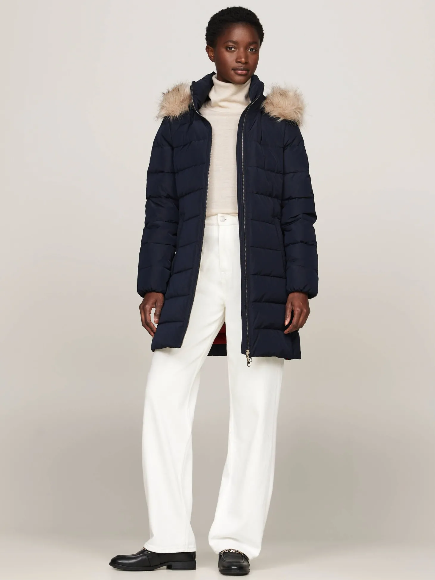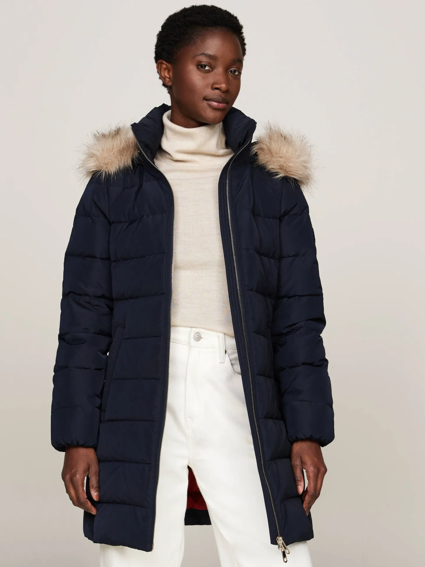 - Fixierte Kapuze mit abnehmbarem Kunstpelz-Besatz