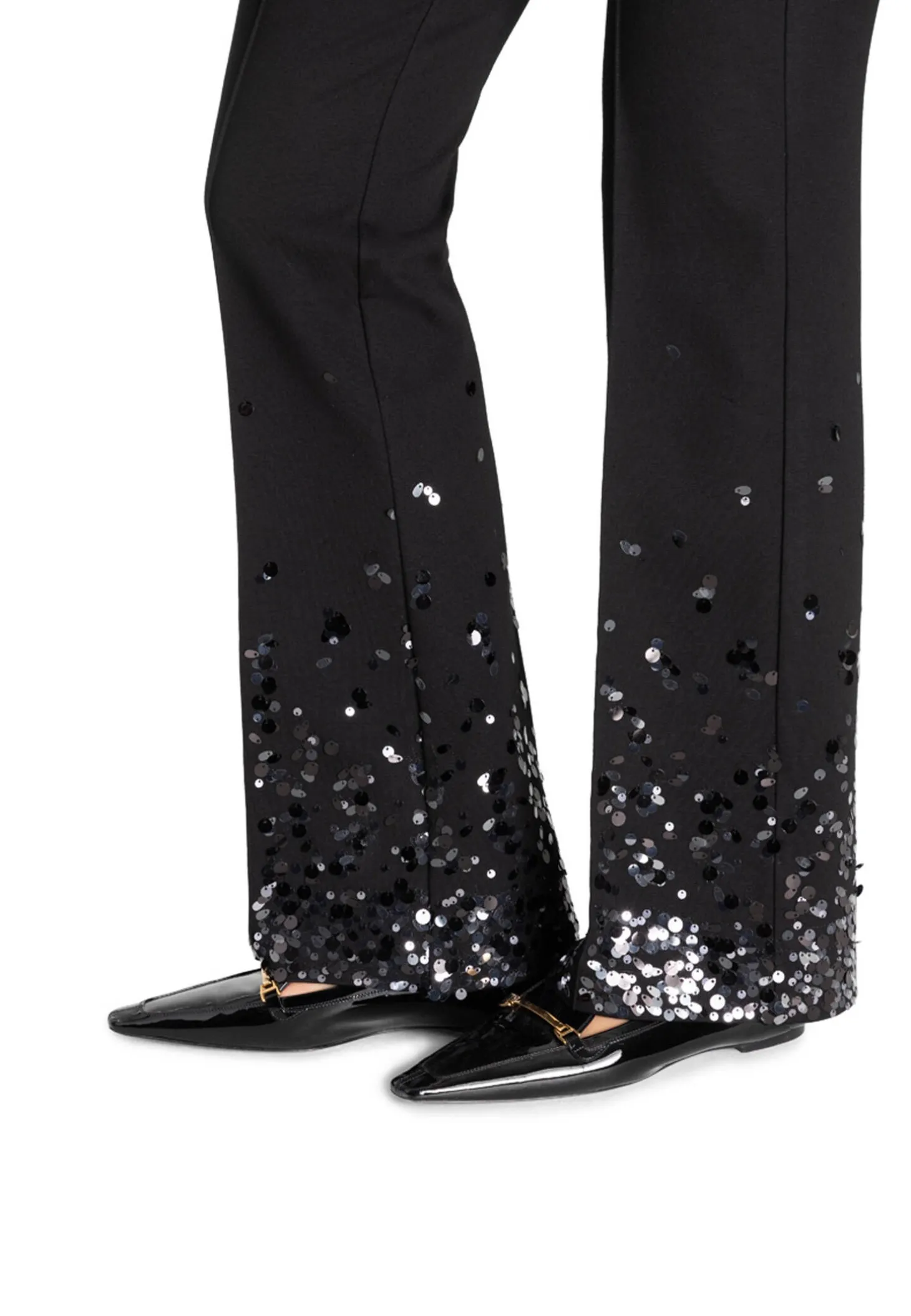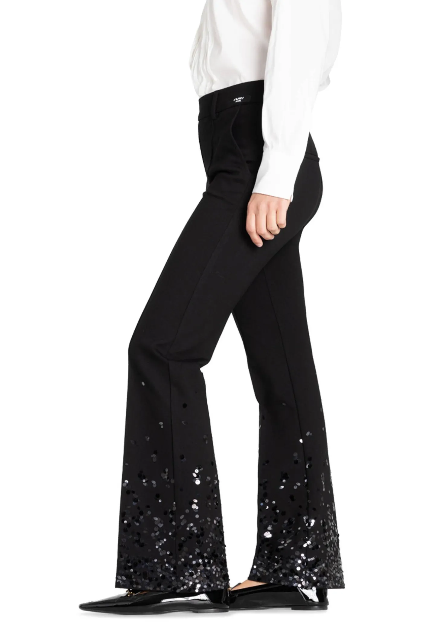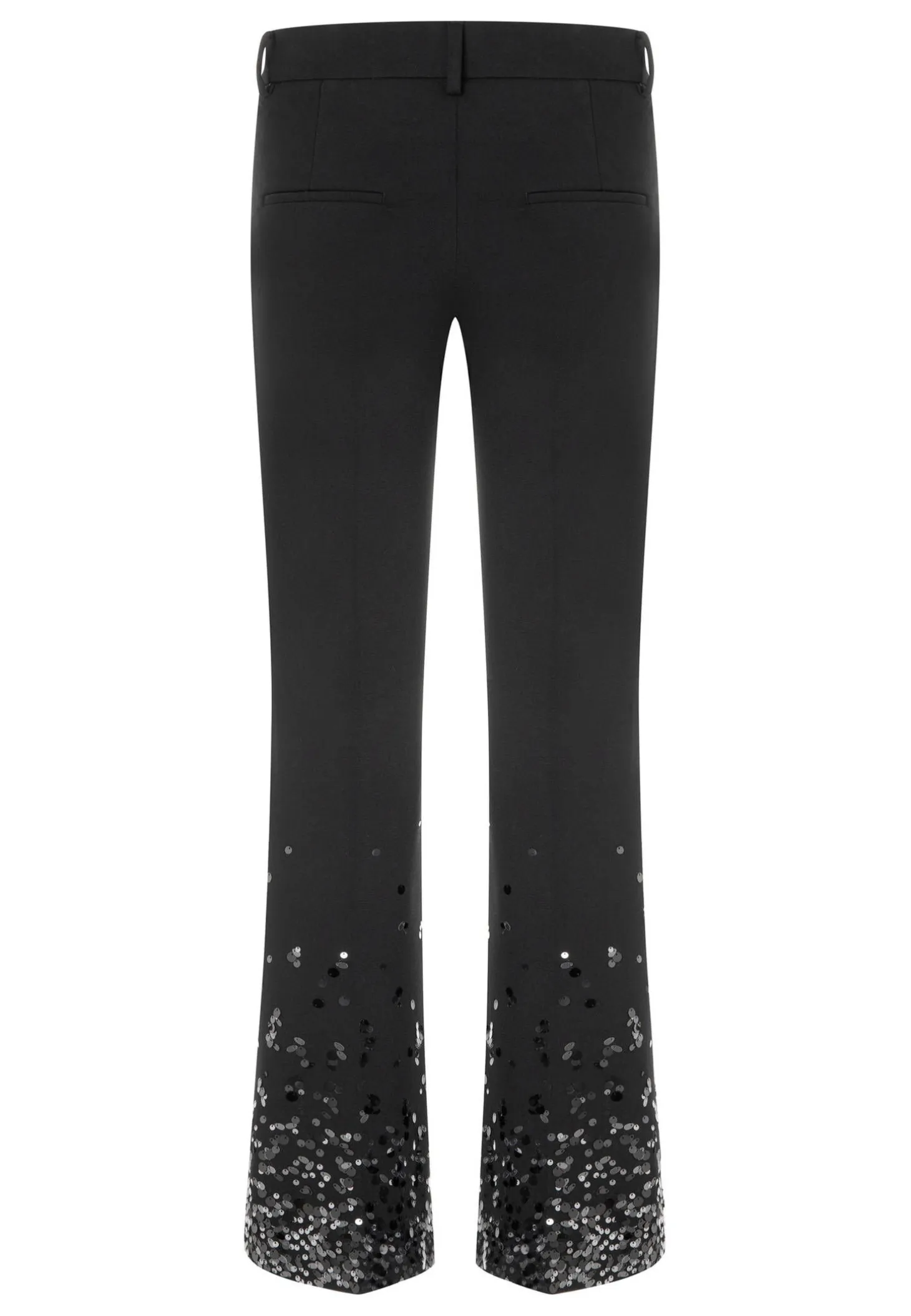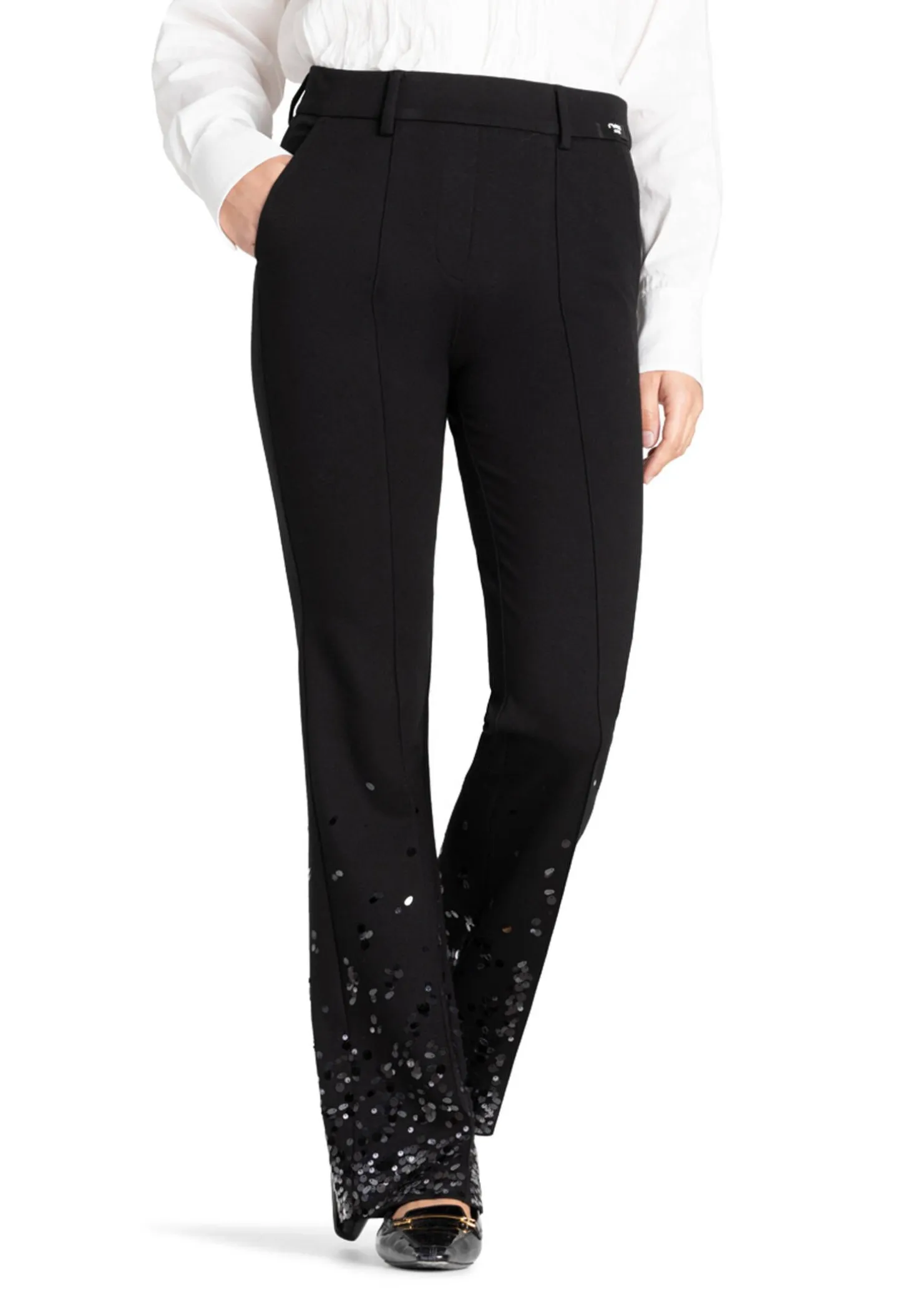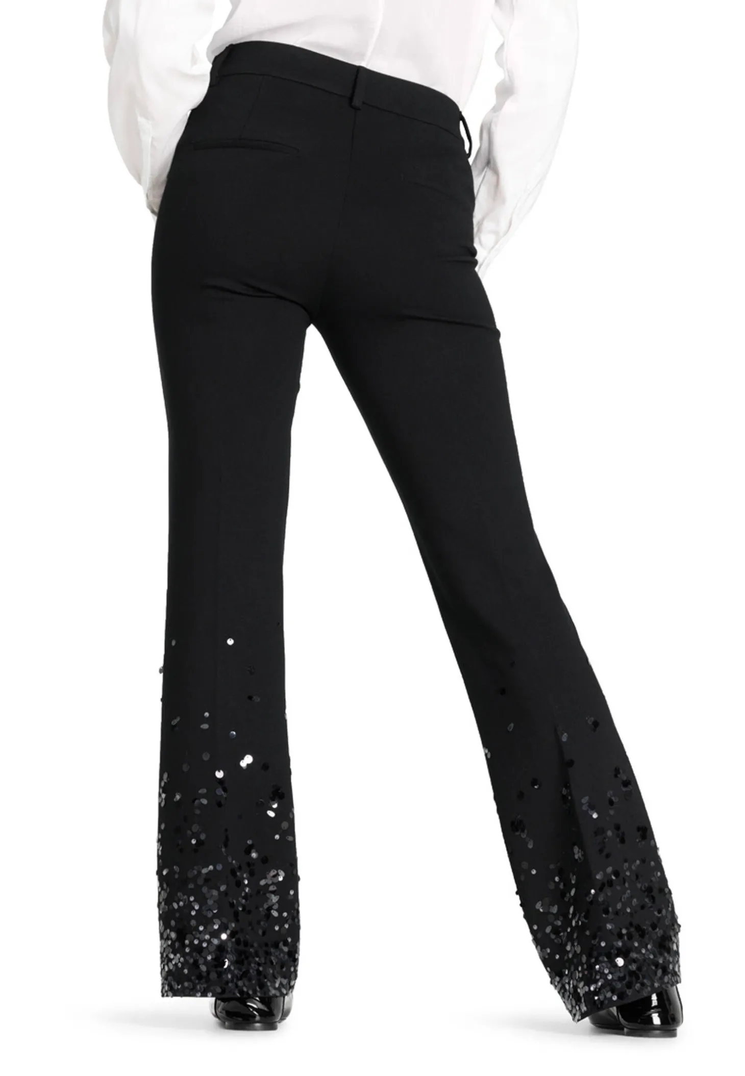 Diese flared Hose in voller Länge aus diagonal strukturiertem Techno-Stretch bietet die perfekte Basis für elegante, klassische Looks.