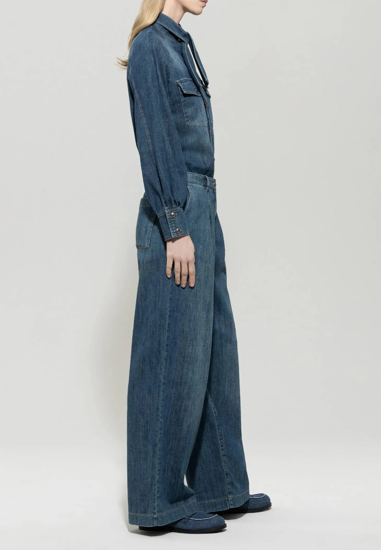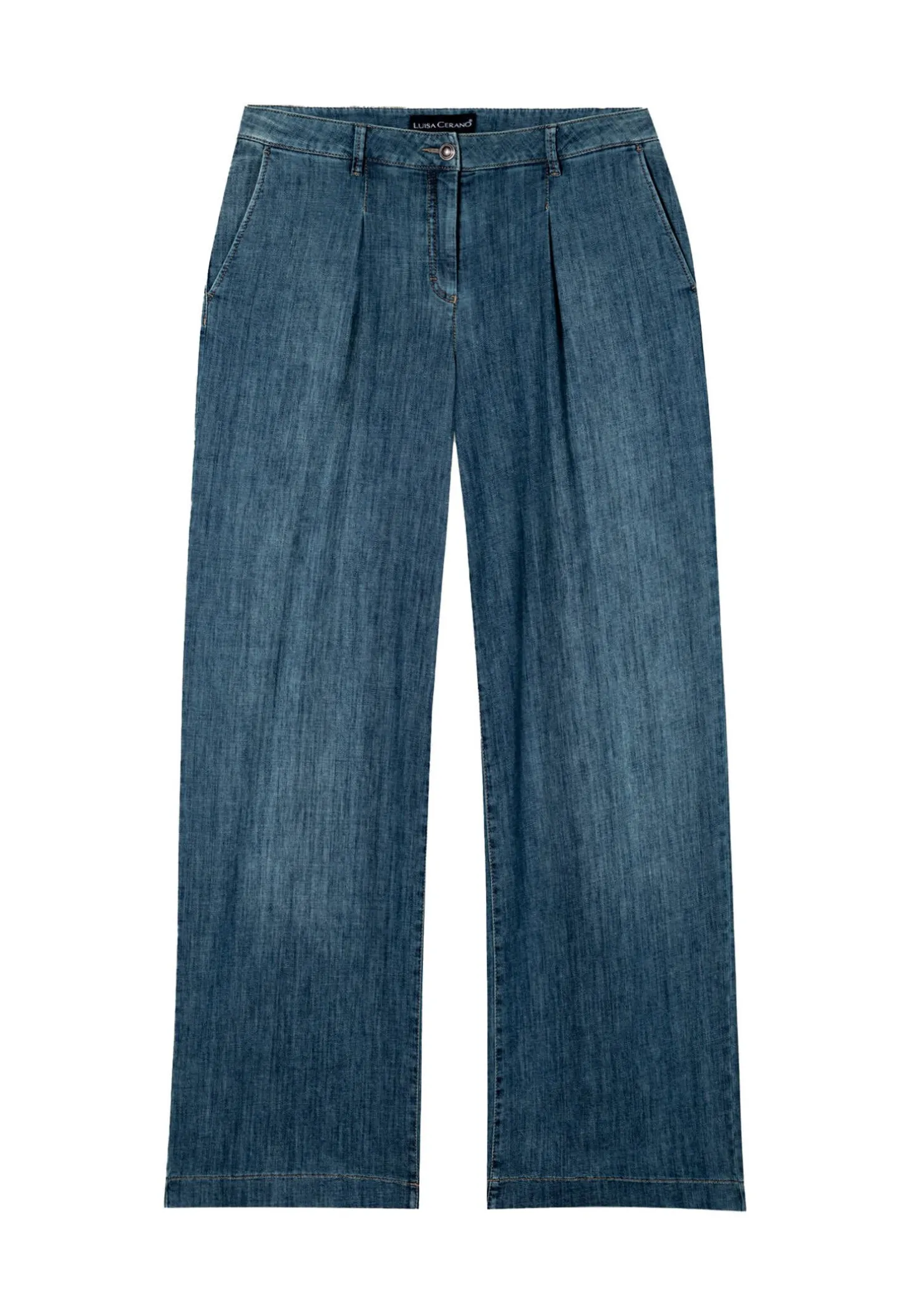 Die lässige Jeans von Luisa Cerano aus leichtem, fließendem Denim in Bleach-Wash-Optik wird von Bundfalten und vier Taschen vervollständigt.
