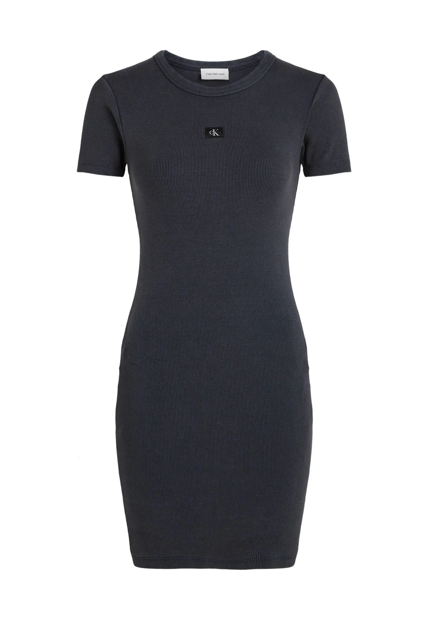 Das figurbetont geschnittene Minikleid von Calvin Klein Jeans ist aus weichem Rippjersey gefertigt und zeigt an der Vorderseite ein dezentes Logo.