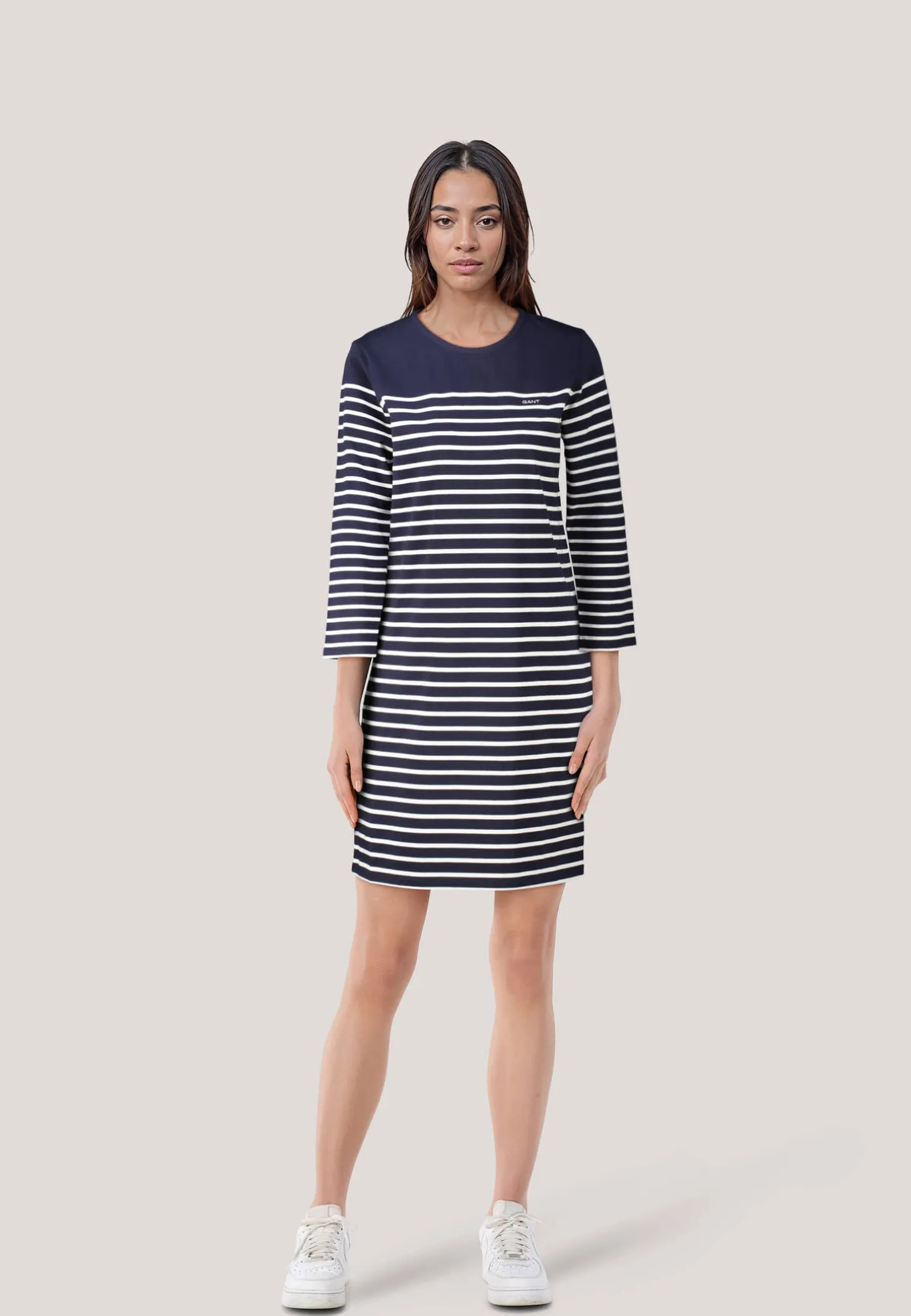 Mit Breton-Streifen sorgt das Gant Jerseykleid für maritimes Flair und dank weichem Baumwolljersey sowie lockerer Passform für ein entspanntes Tragegefühl.