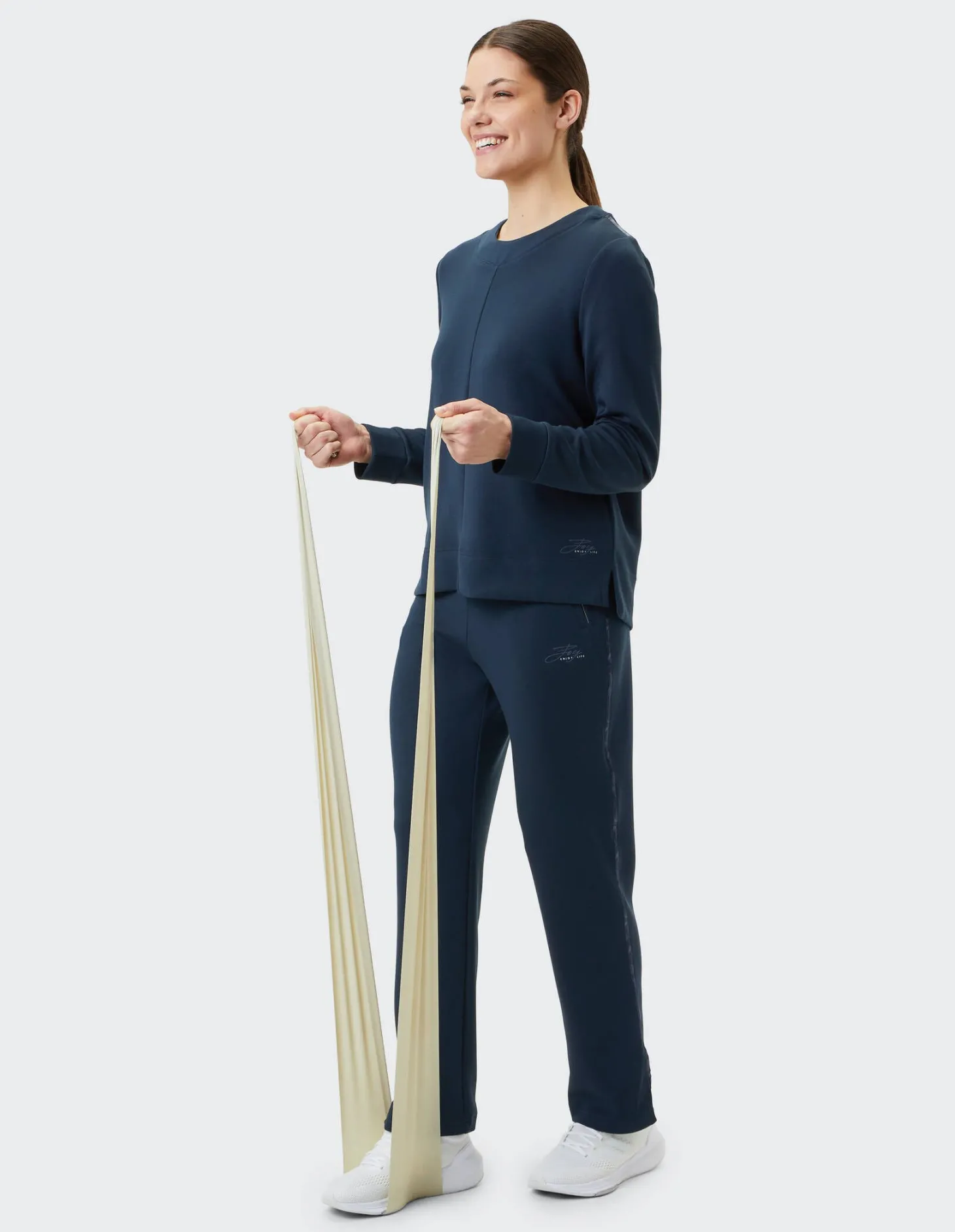 Die Jasmine Hose von Joy Sportswear beeindruckt mit angenehmer Weichheit und dekorativen Details.