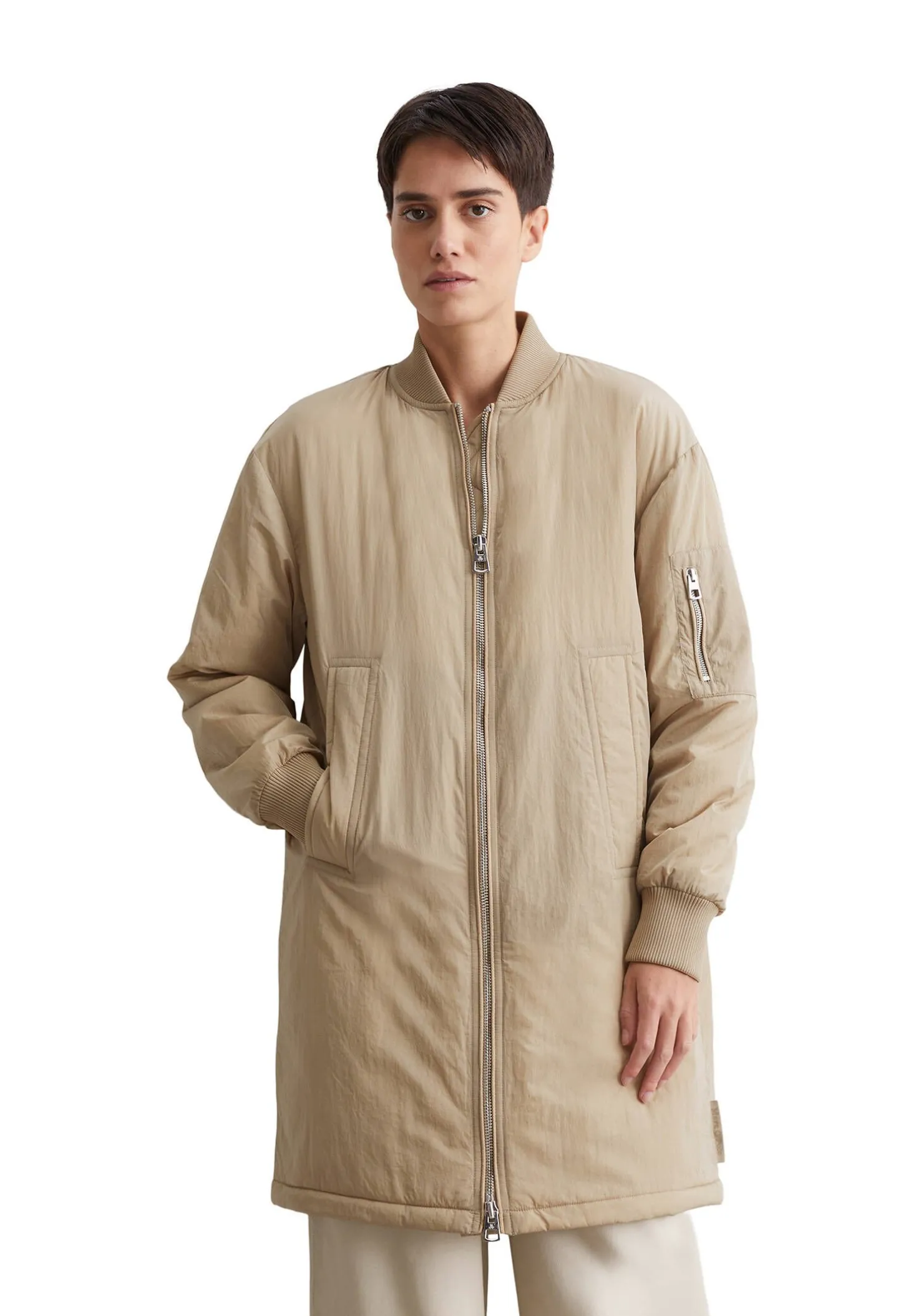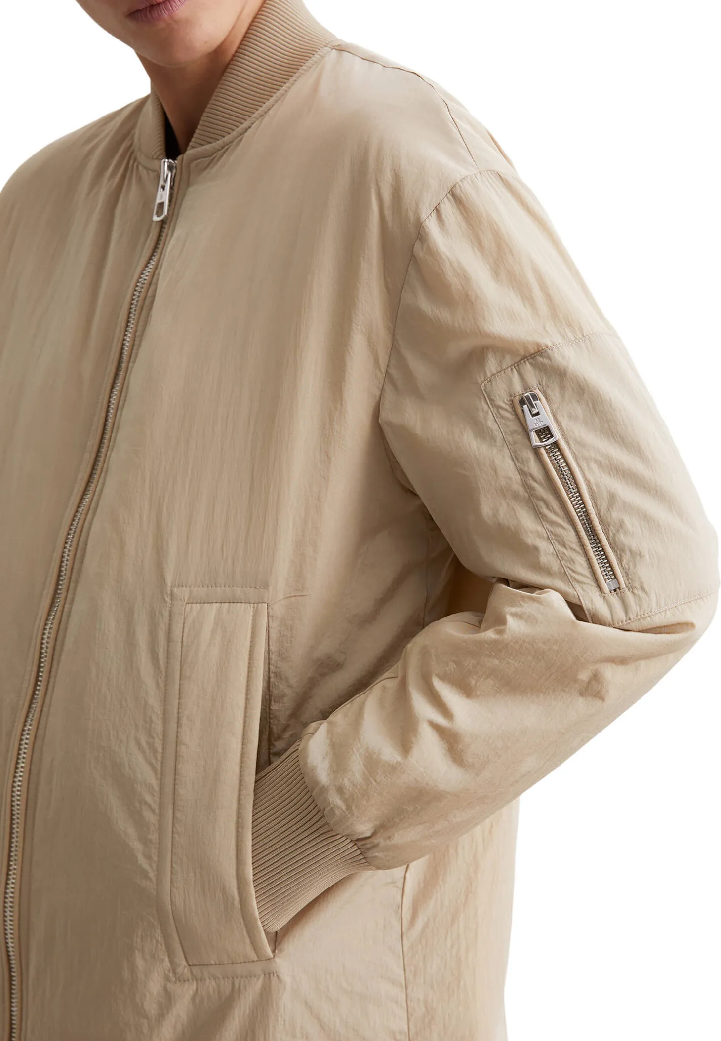 - Zwei Seitentaschen, eine Ärmeltasche mit Reißverschluss