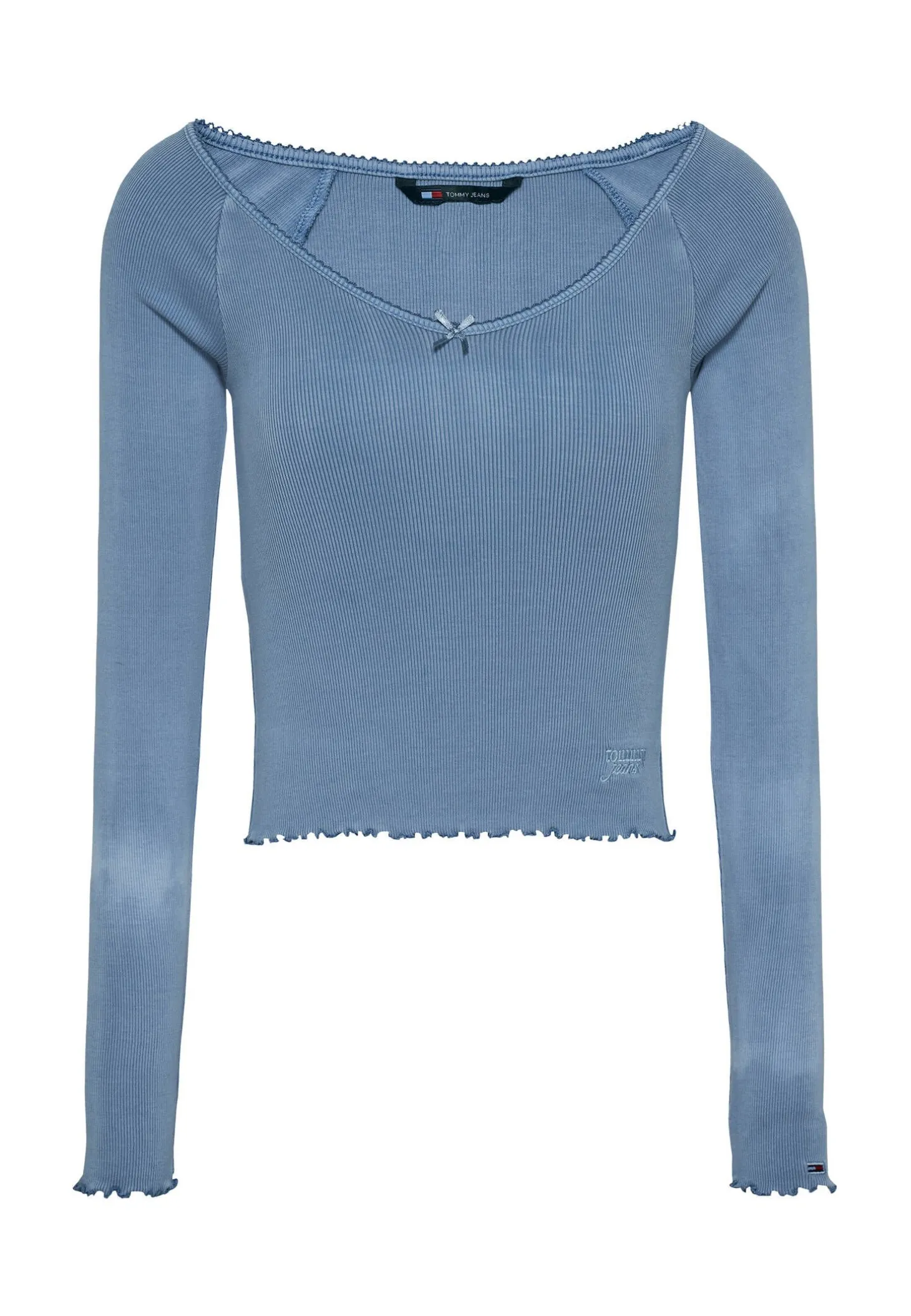 Das Langarmshirt von Tommy Jeans überzeugt mit kurzer, schmaler Silhouette und verspielten Details.