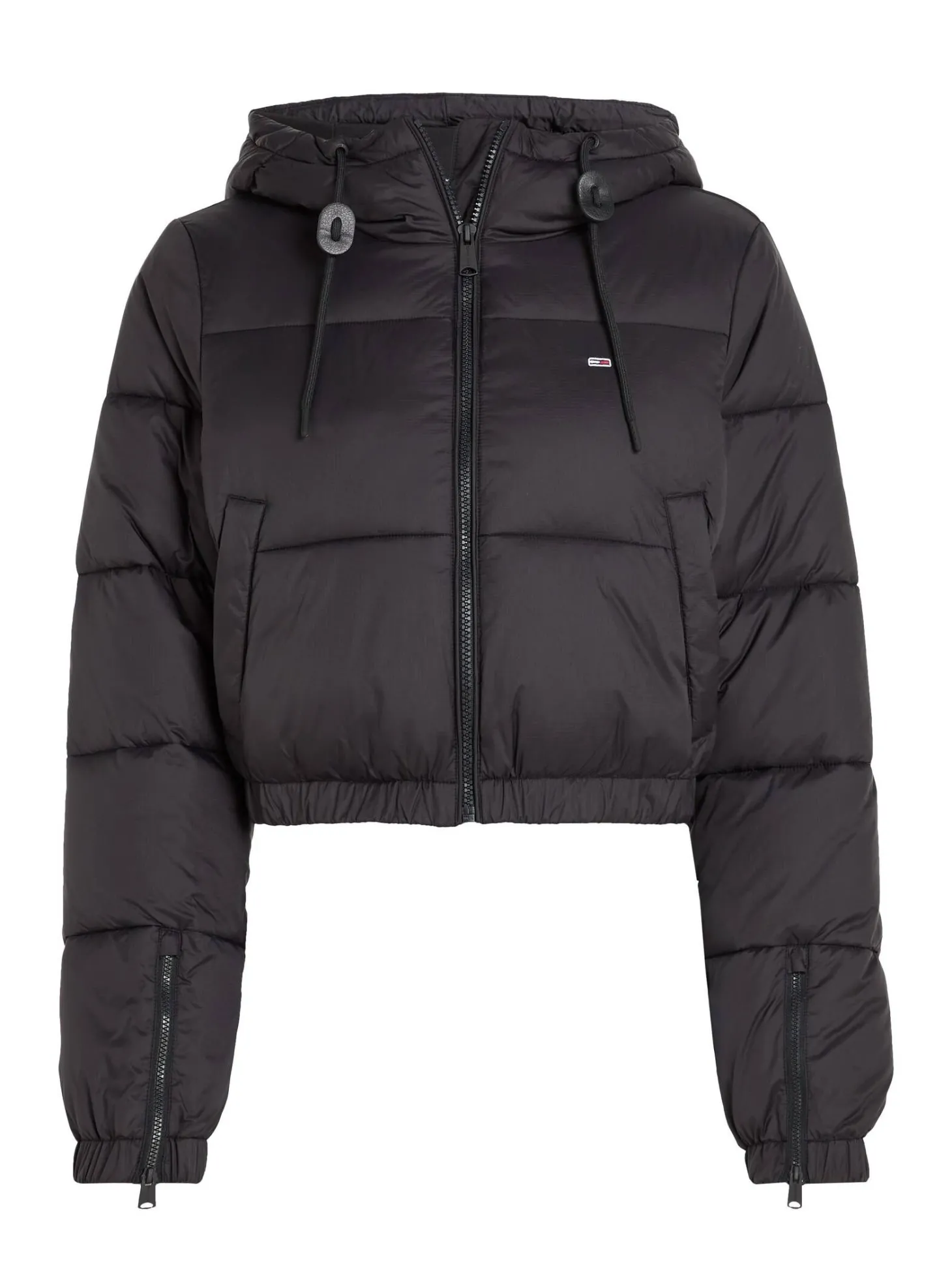 Die Steppjacke von Tommy Jeans zeigt sich im schlichten Design mit einem figurnahen Schnitt im Cropped Stil. Eine großzügige Kapuze mit Tunnelzug, zwei Eingrifftaschen und elastische Bündchen an Saum und Ärmelschlüssen vervollkommnen den Tragekomfort.