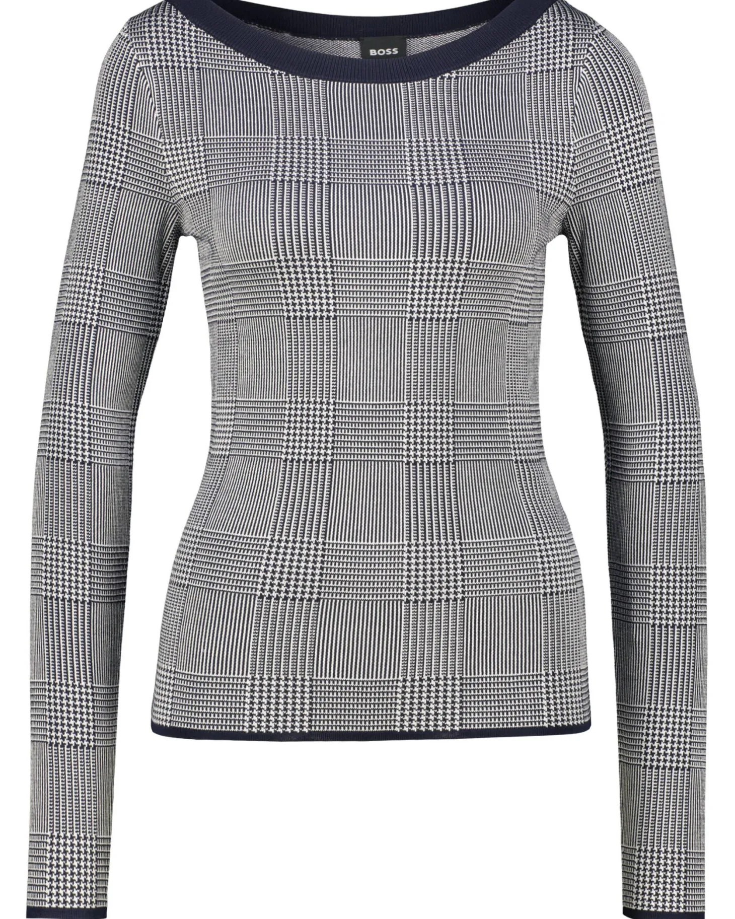 Schmal geschnittener Pullover Ferenti von BOSS aus einem soften Viskose-Mix mit klassischem Glencheck-Dessin.
