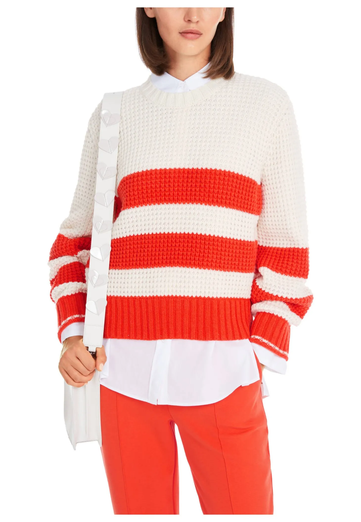 Pullover in anschmiegsamem Wollmix mit Viskose und Kaschmir. Das Modell hat einen dezenten Egg Shape – Säume und Rundhals sind mit Ripp-Bündchen eingefasst. Cool, das Colorblocking. Der Pulli ist Knitted in Germany. Er wird mit modernsten Technologien in Deutschland gestrickt und veredelt. Die einzelnen Teile – wie Rücken- und Vorderteil etc. – werden in europäischen Partnerbetrieben zusammengenäht.