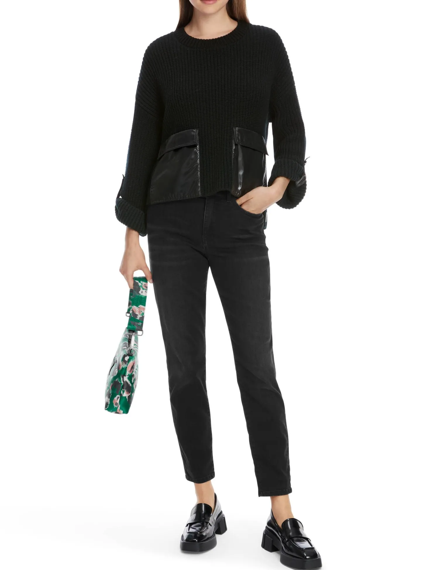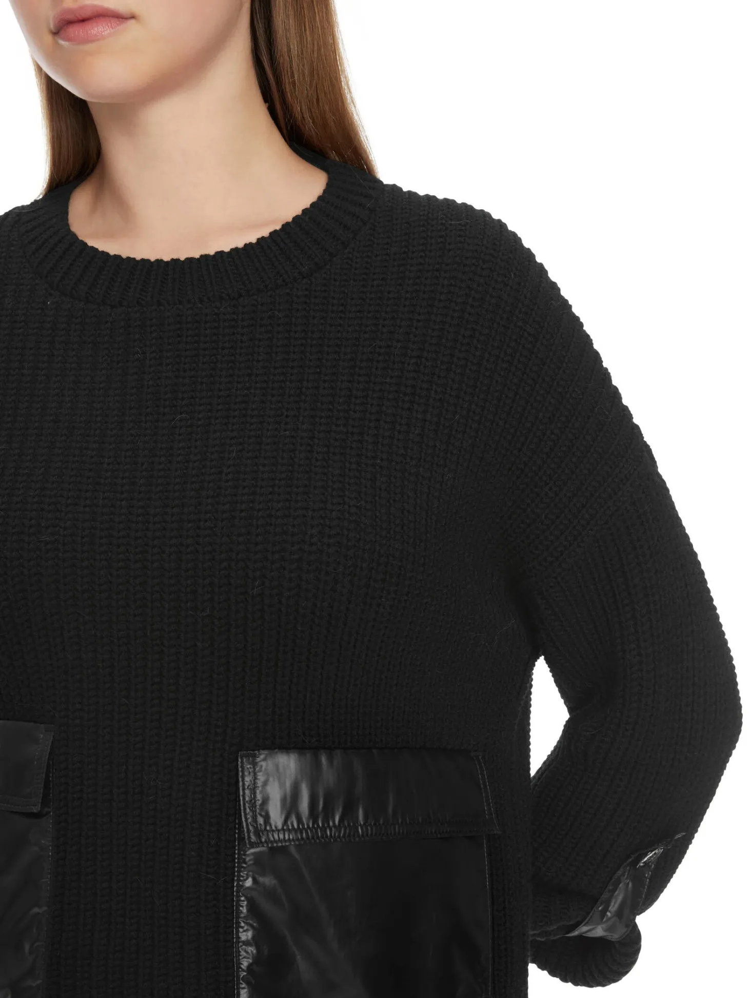 Shiny Nylon Patches als Taschen und knöpfbare Ärmelriegel sind die Highlights bei diesem Crew-Neck-Sweater. Seine legere Silhouette kommt mit verlängertem Rücken und Seitenschlitzen. Der Rippen-Pullover ist mit Wolle und Alpaka „Knitted in Germany“: Das Verstricken der Garne auf hochmodernen Strickmaschinen und die Veredelung der Stoffe geschehen am Standort Deutschland. Zusammengenäht werden die einzelnen Teile wie Ärmel, Vorderteil etc. in europäischen Partnerbetrieben.