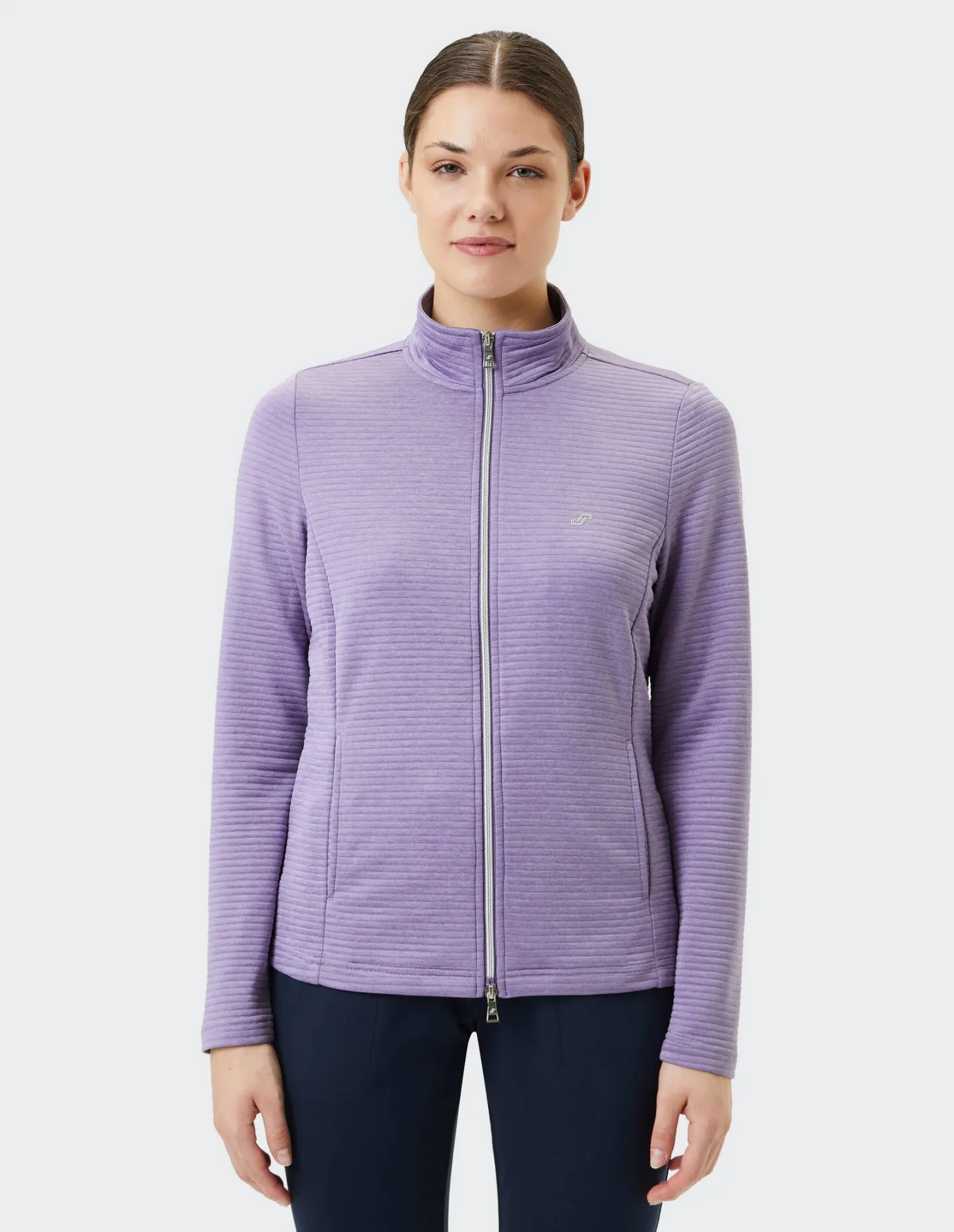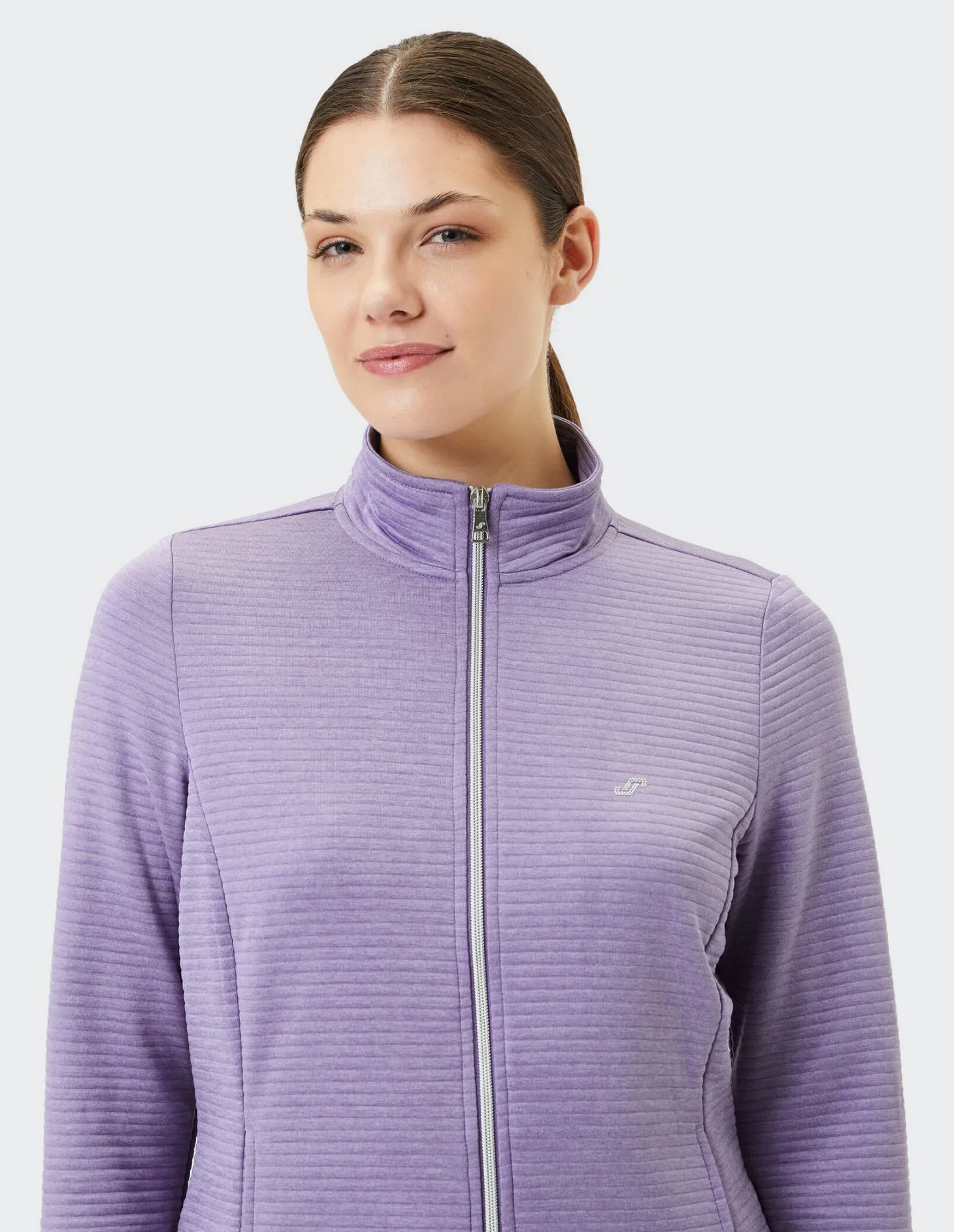 Die Sweatjacke Peggy von Joy Sportswear findet dank schnell trocknendem Gewebe ihren Platz in der Fitnessgarderobe und sorgt mit modischer Optik für den nötigen Style-Faktor.