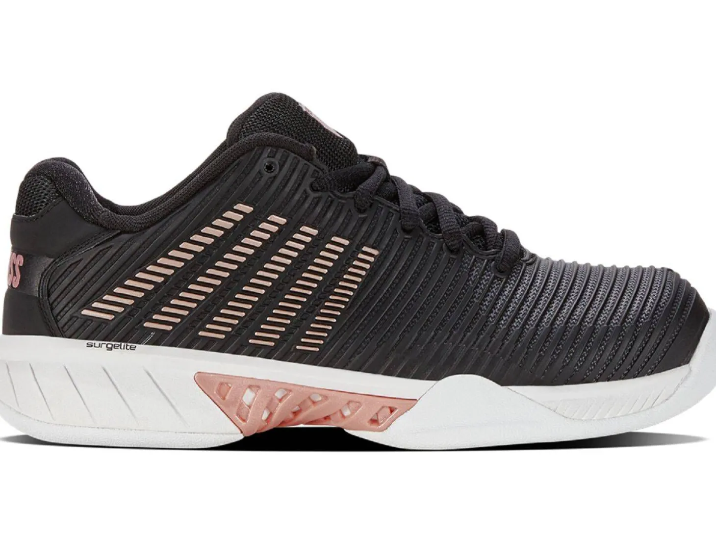 Die Tennisschuhe Hypercourt Express 2 von K-Swiss bieten eine ausgezeichnete Performance auf Carpet-Plätzen dank atmungsaktiver Ausstattung, Durawrap Flex-Unterstützung und Surglite-Mittelsohlentechnologie.
