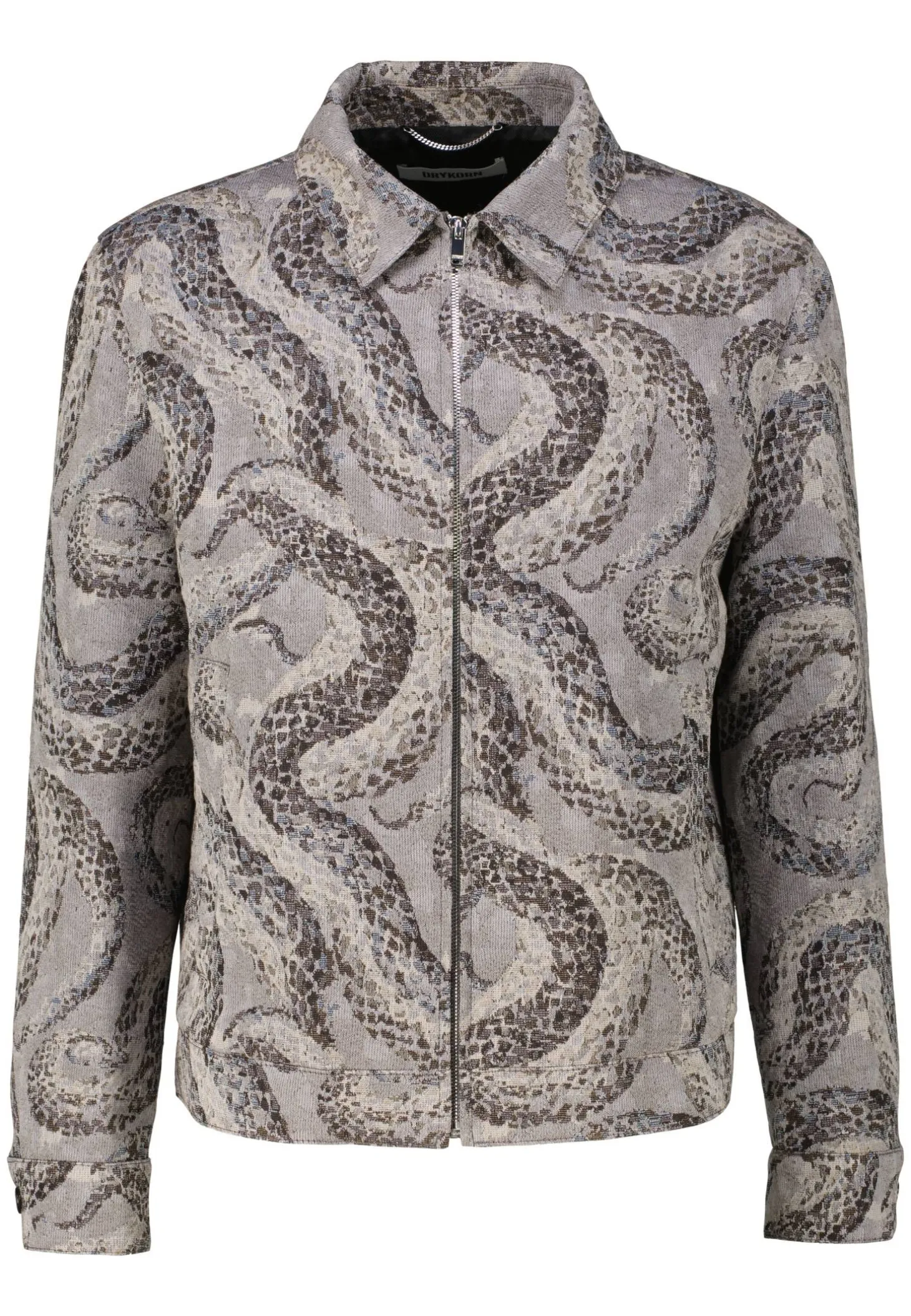Diese Blouson-Jacke mit Umlegekragen aus hochwertigem Jacquard erhält durch das Schlangen-Dessin einen modernen Look.