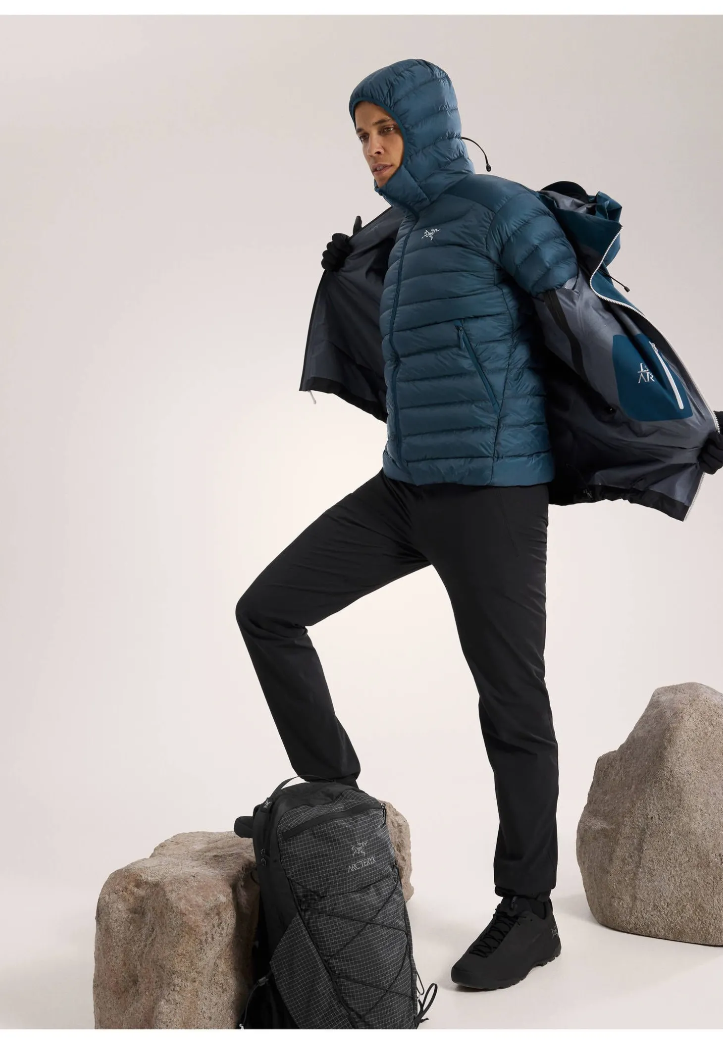 - Verstellbare, helmkompatible StormHood™ schützt zuverlässig vor Wind und Wetter, ohne zusätzliches Gewicht durch Daunenisolierung.