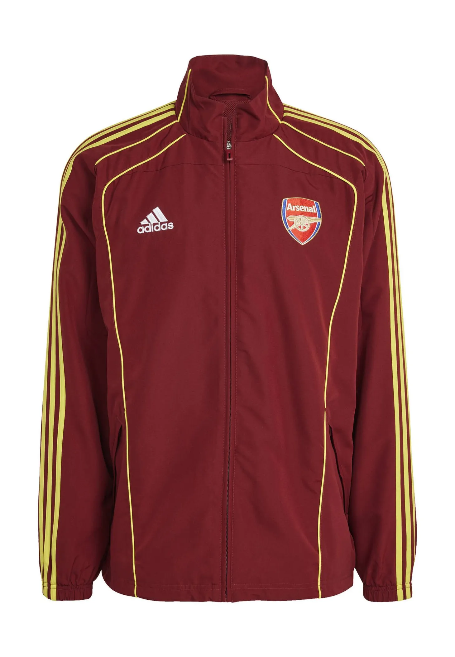 Mit dieser Trainingsjacke im Retrolook zeigst du deine Begeisterung für den FC Arsenal. Leuchtende Paspelierungen und ein aufgesticktes adidas Logo machen den klassischen Fußball-Look perfekt.