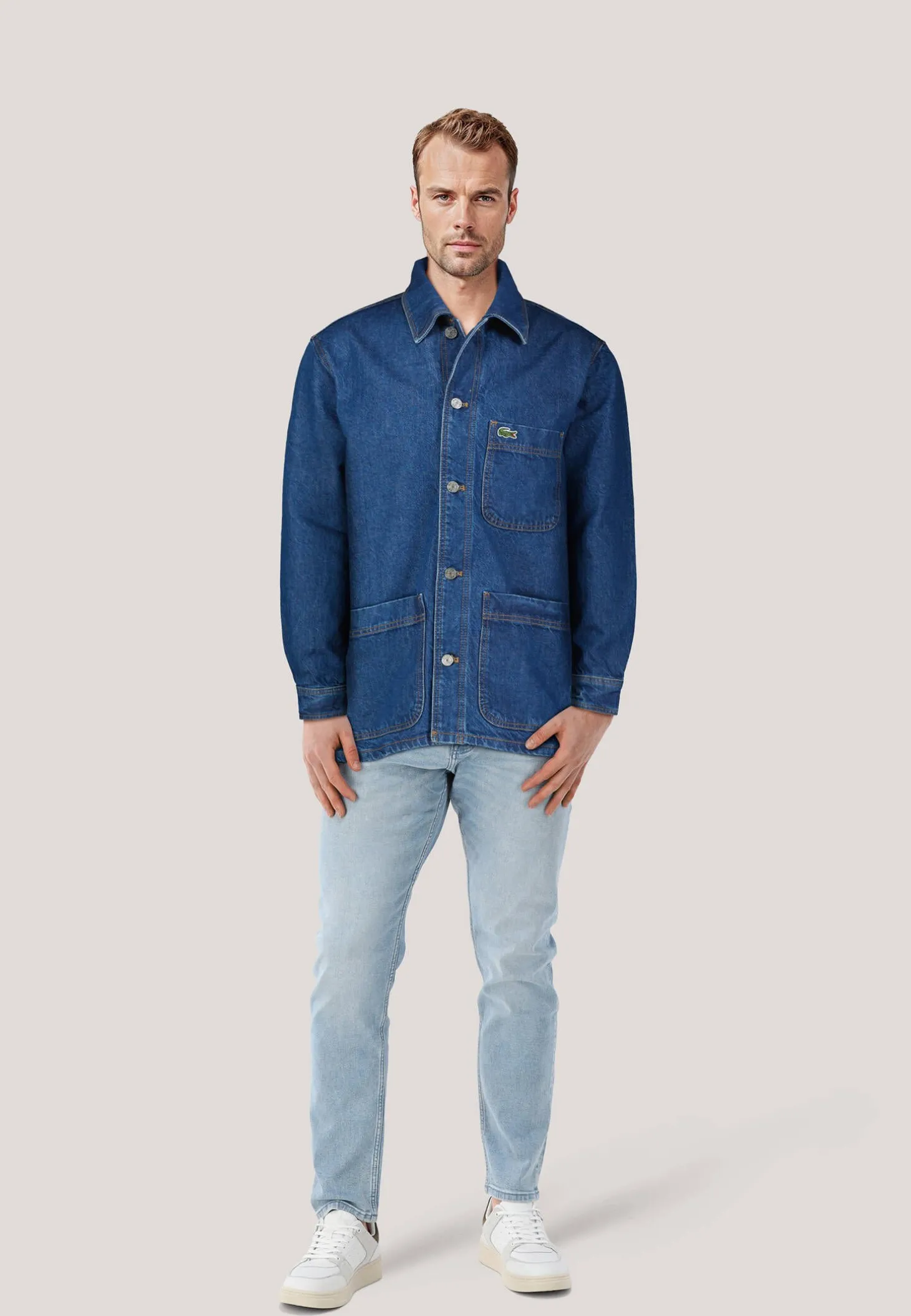 - Aufgenähtes, gesticktes Krokodil auf der Brusttasche