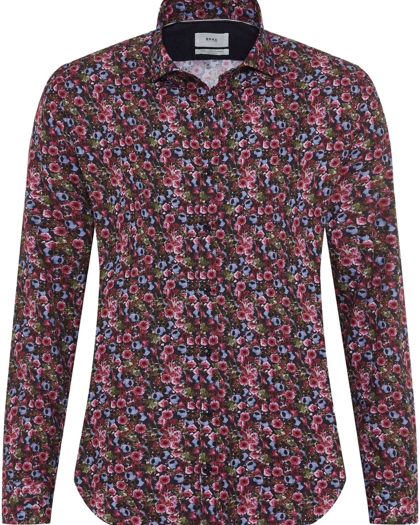 Dieses Herrenhemd bietet dank Hi-Flex-Technologie und Baumwoll-Elastan-Mix hohen Tragekomfort und Bewegungsfreiheit, während der Shark-Kragen und ein minimalistischer Print für einen modernen Look sorgen.