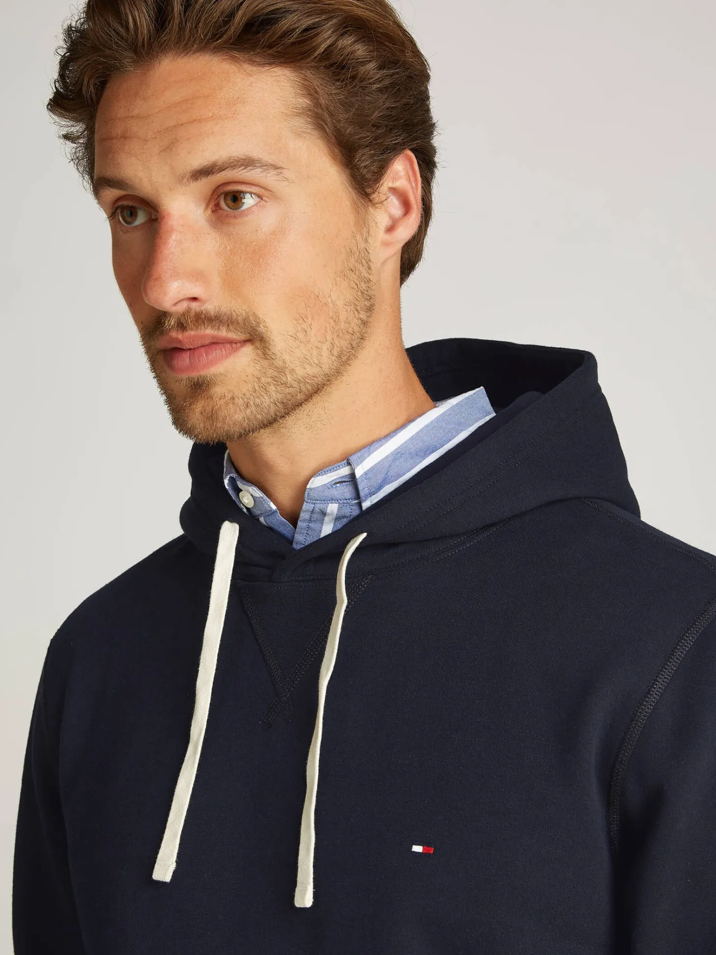 Klassischer Hoodie von Tommy Hilfiger mit weich aufgerauter Innenseite und geräumiger Kängurutasche.