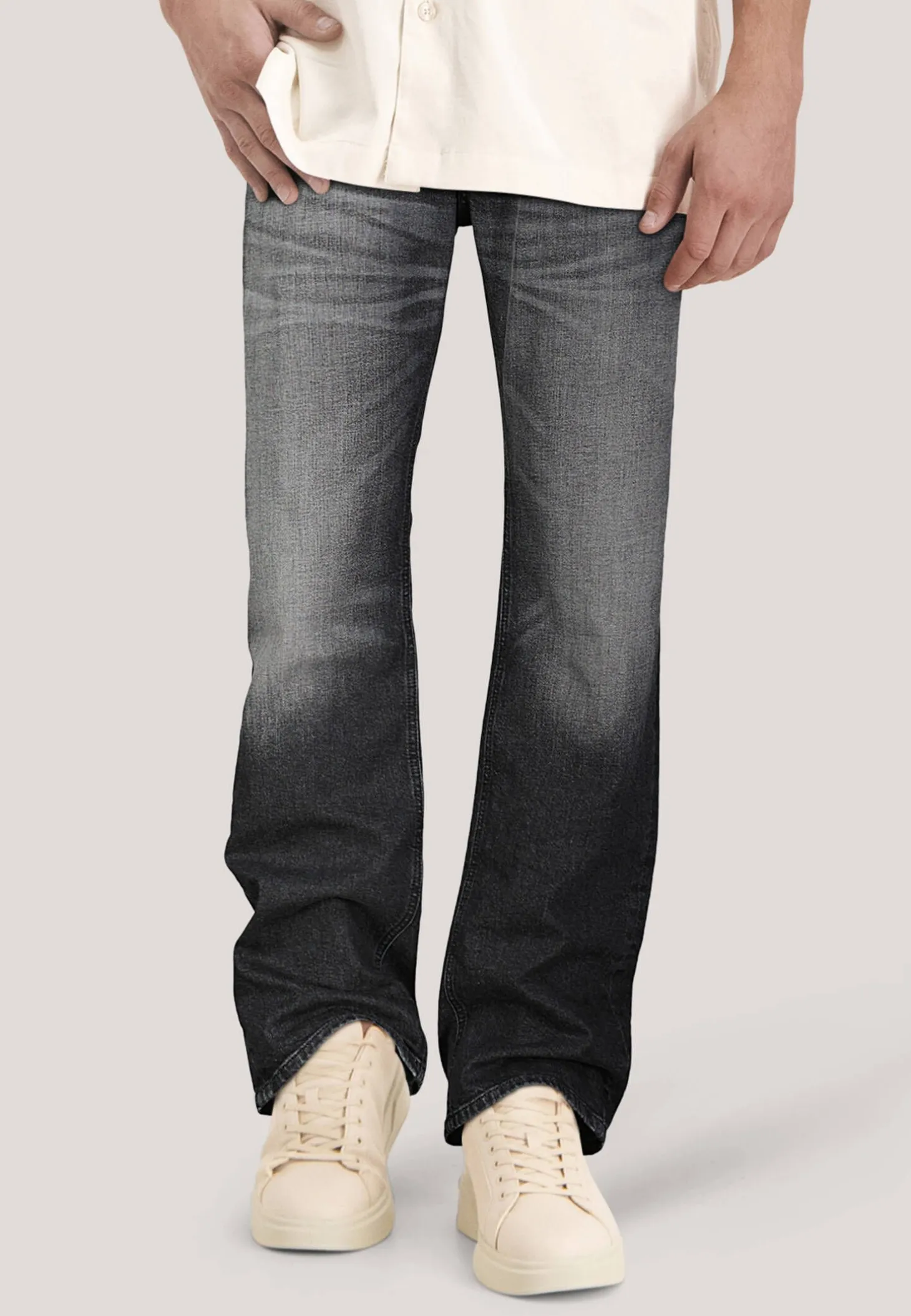 Die Jeans 1985 Larkee von Diesel erfreut Denim-Fans mit klassischer, gerader Silhouette, Old School Knopfleiste und Five-Pocket-Format.