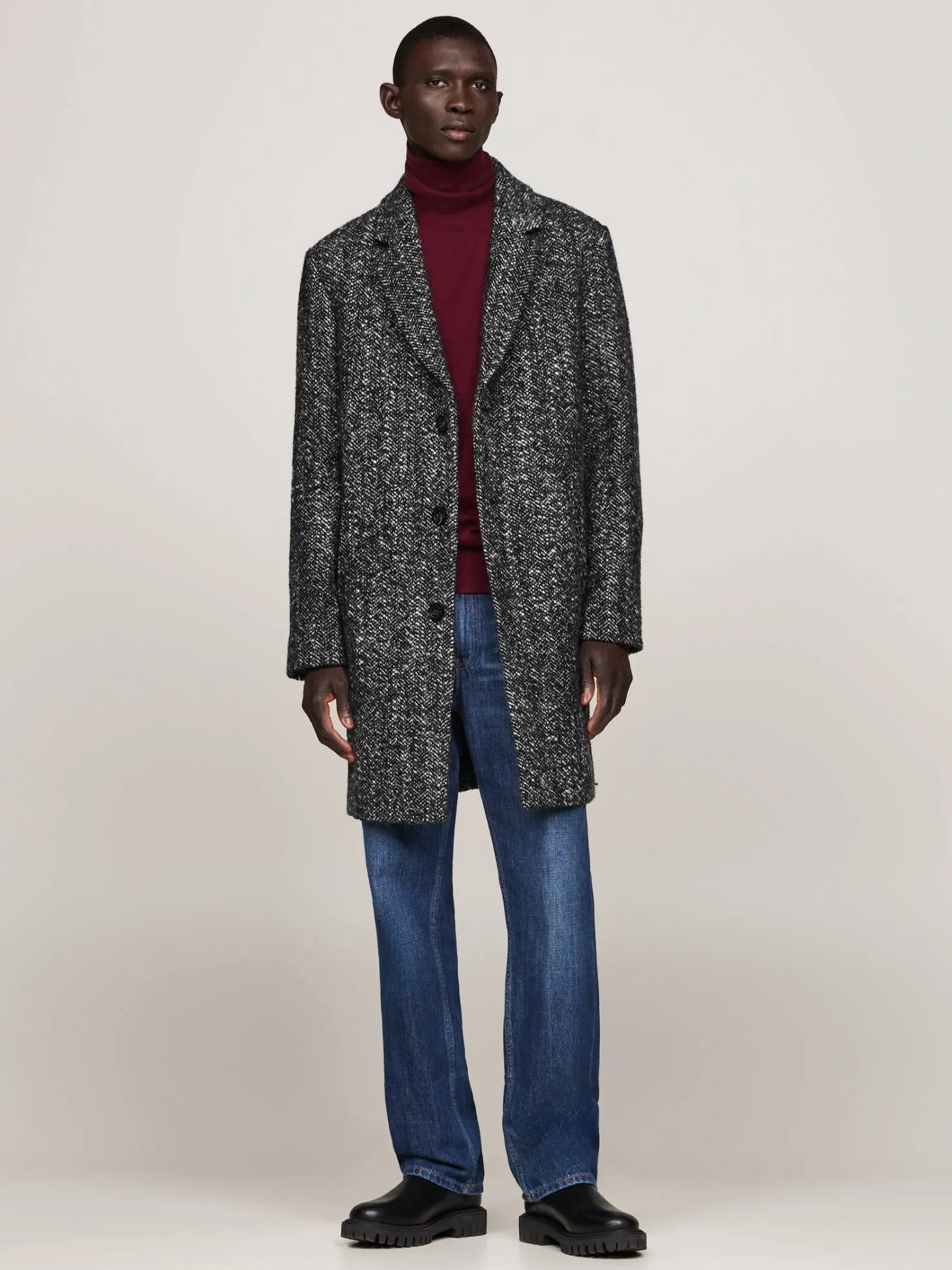 Zeitloser Wollmantel von Tommy Hilfiger mit klassischem Herringbone-Muster.