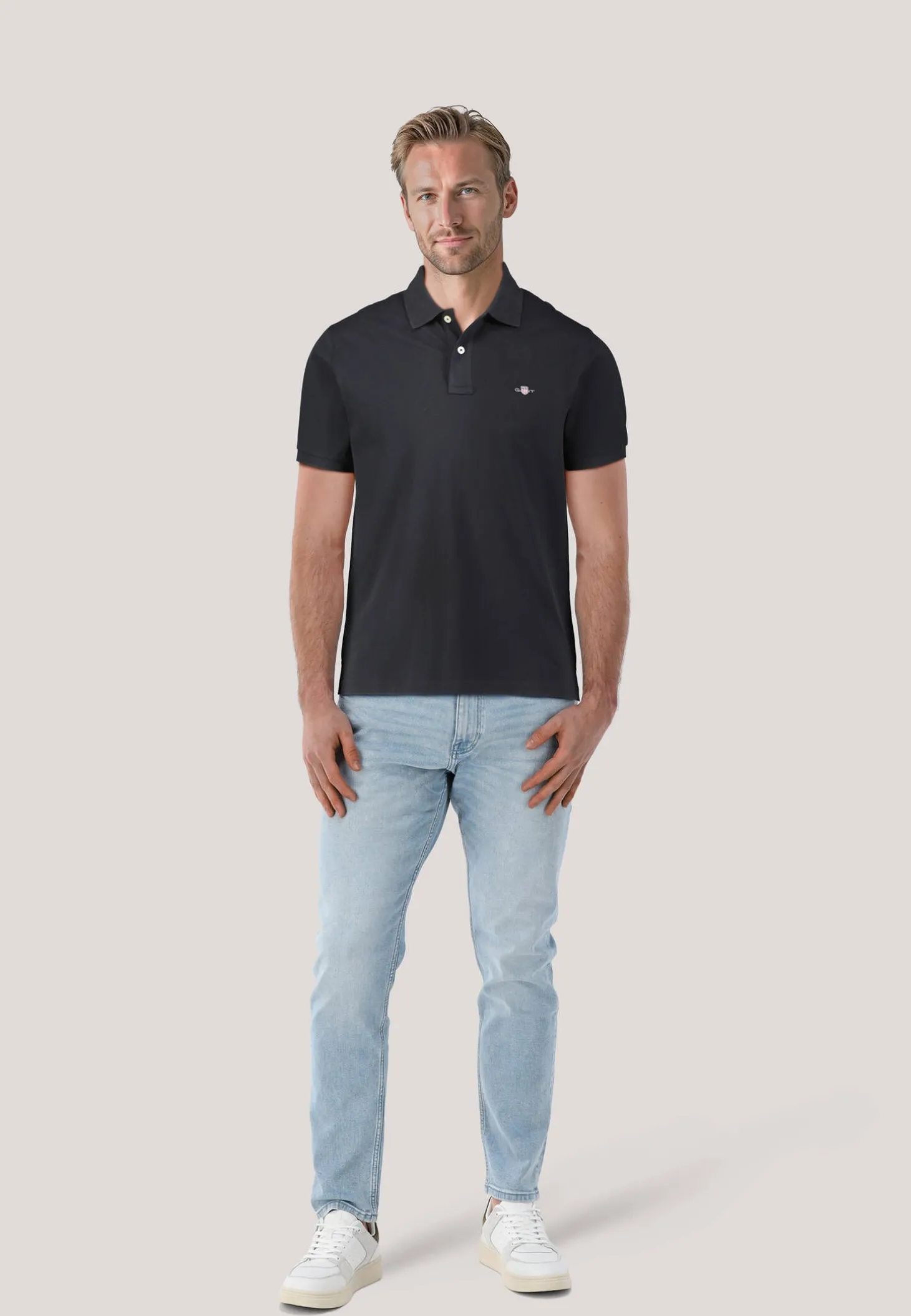 Klassisches Poloshirt von Gant aus weichem Baumwollpikee, links vorne mit kleiner Logostickerei.