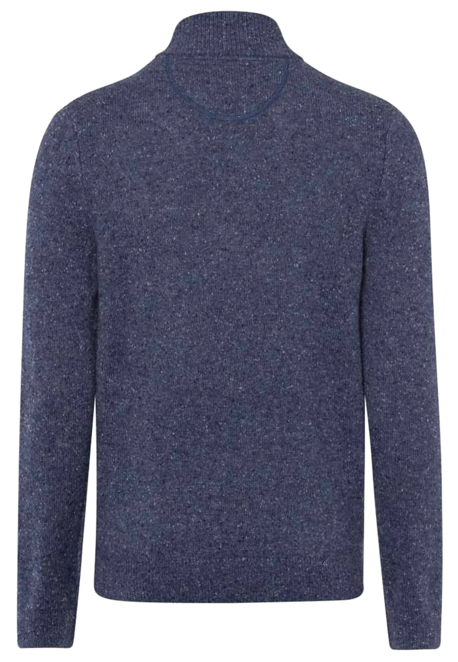 Dieser gerade geschnittene Herrenpullover besticht durch einen modernen Troyerkragen mit Reißverschluss und eine herbstliche Tweed-Optik.