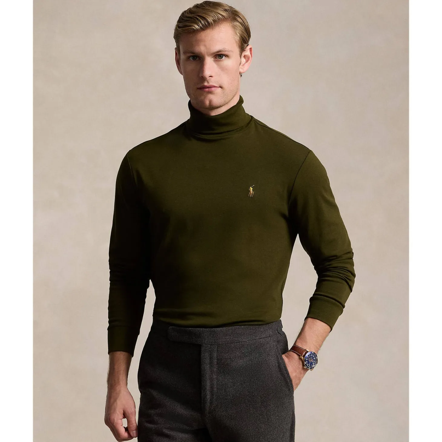 Im sportlichen Look präsentiert Polo Ralph Lauren diesen klassischen Rollkragenpullover aus softem Baumwolljersey.