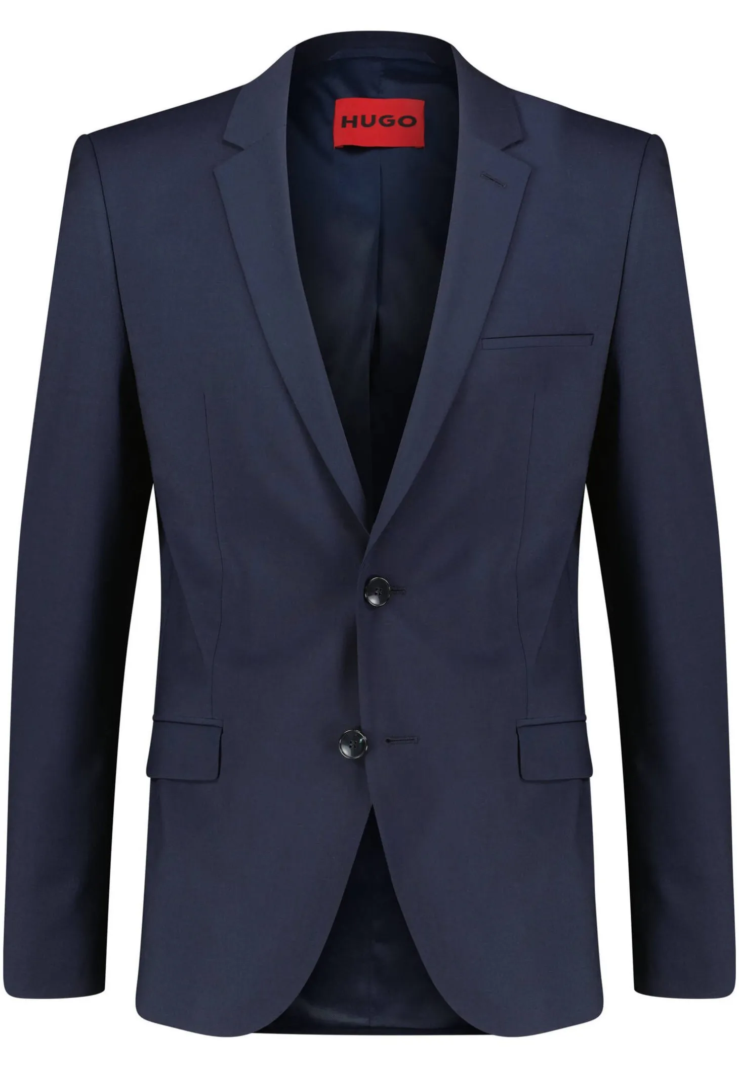 - Eine paspelierte Brusttasche, zwei paspelierte Pattentaschen, zwei Innentaschen