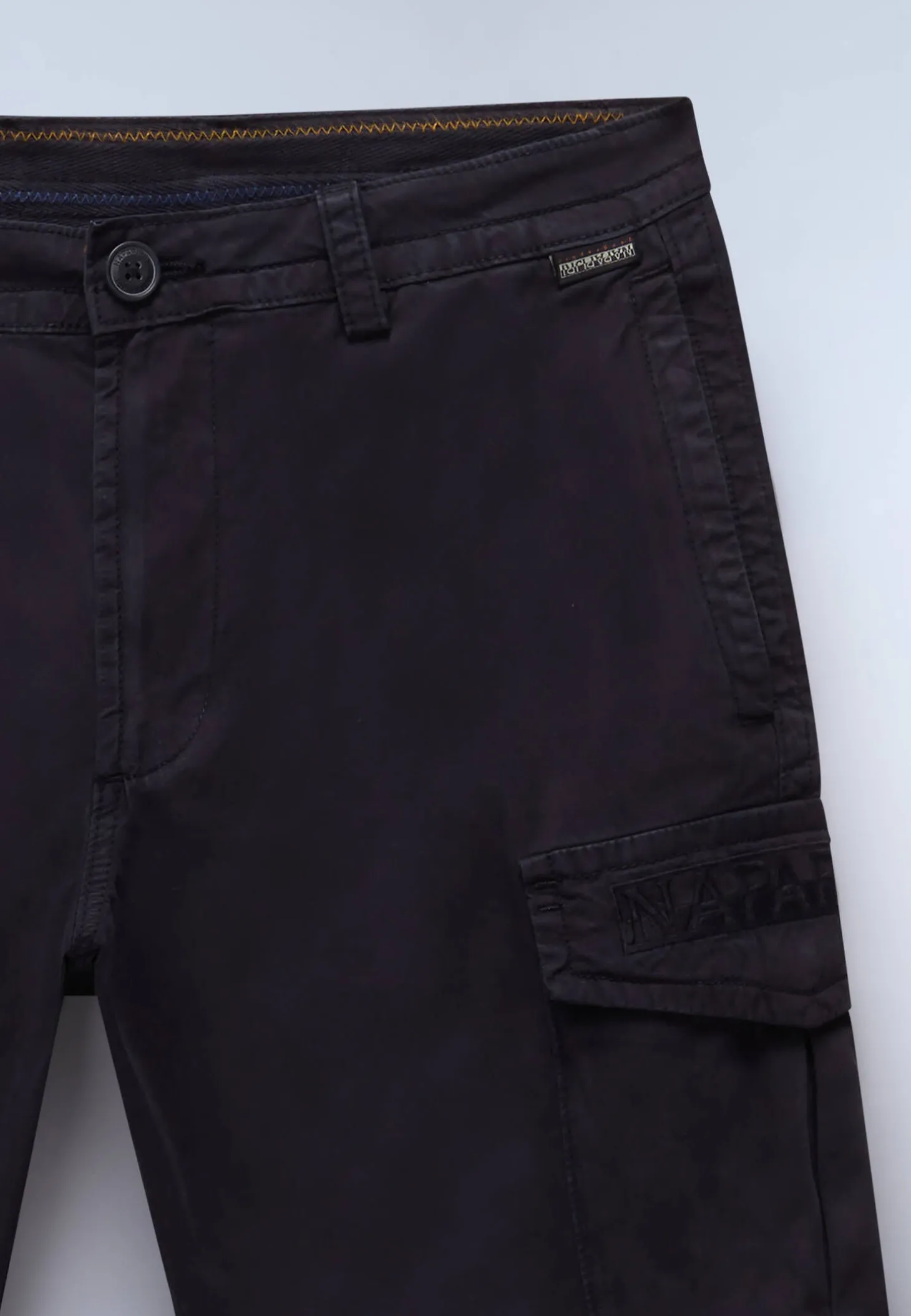 - Zwei seitliche Eingrifftaschen, zwei Gesäßtaschen, zwei Cargotaschen