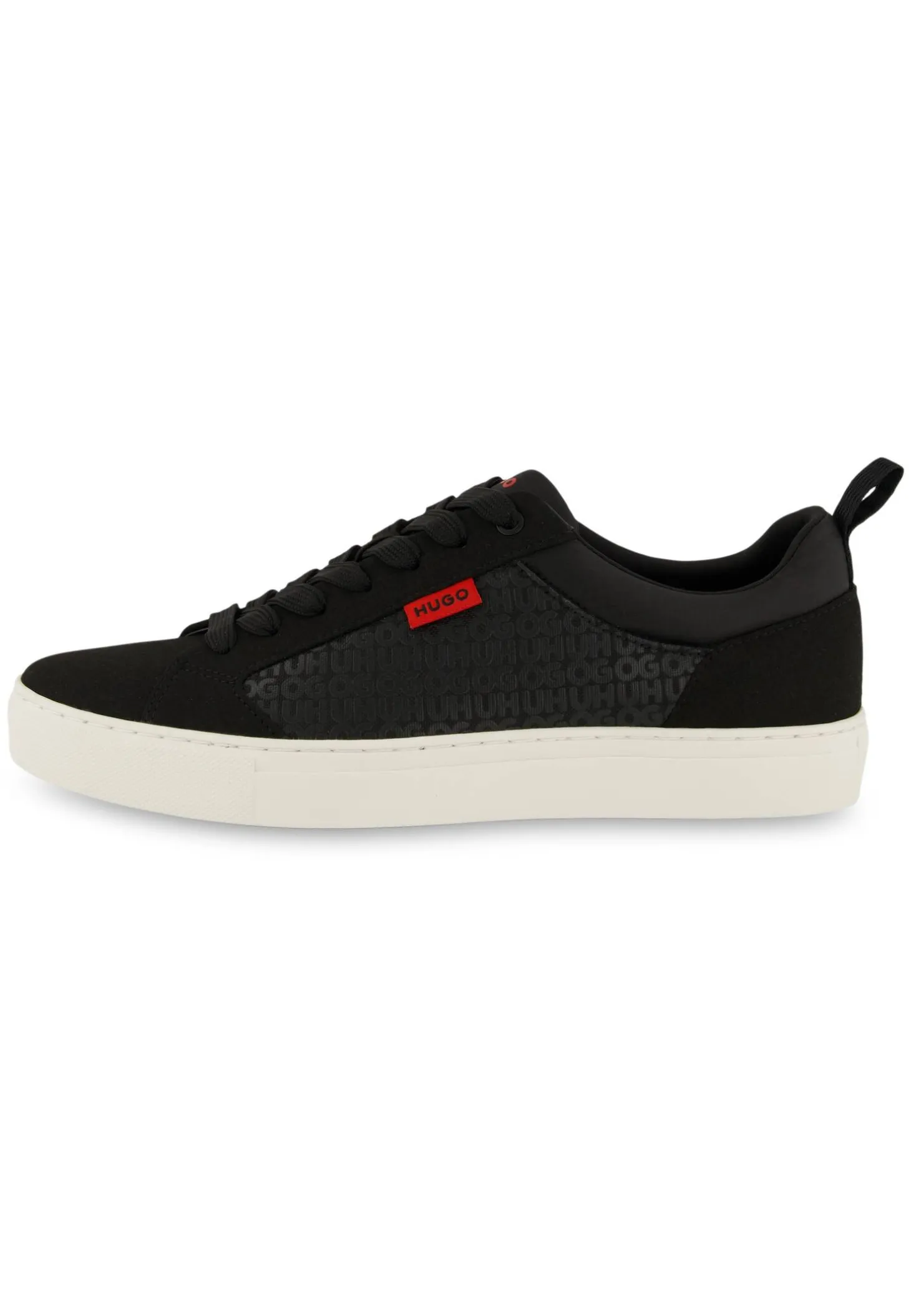 Der HUGO Sneaker Morrie trägt sich angenehm leicht und punktet zudem mit einem Ton-in-Ton Logomuster sowie textilem Verloursmaterial.