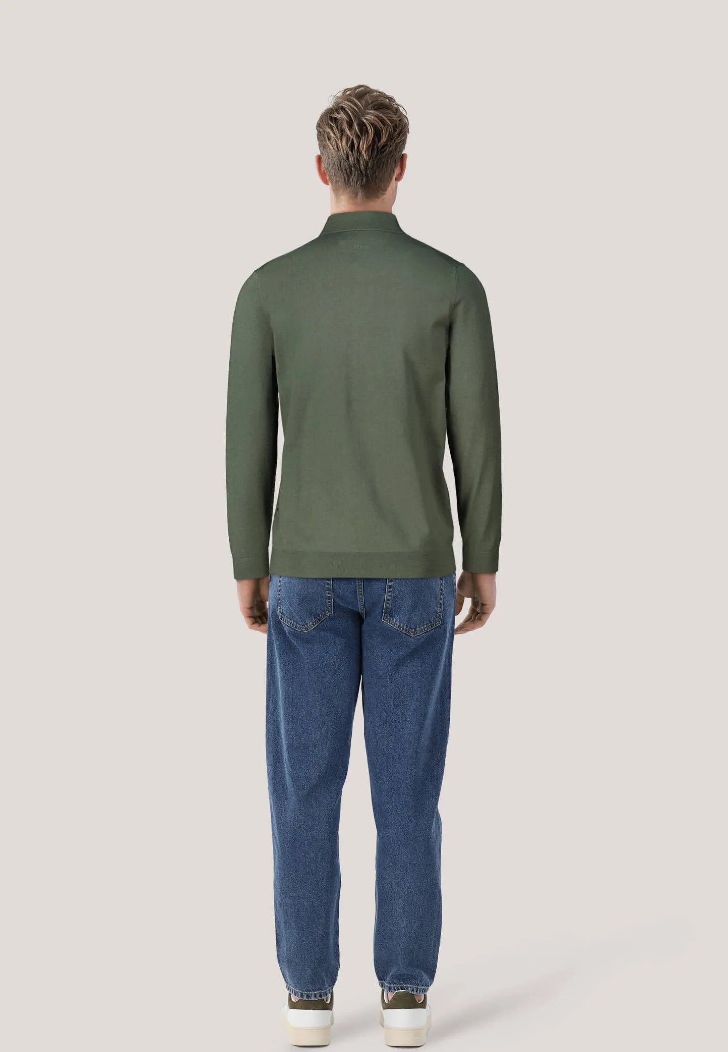 - Fein gerippter Kragen, Saum und Ärmelbündchen