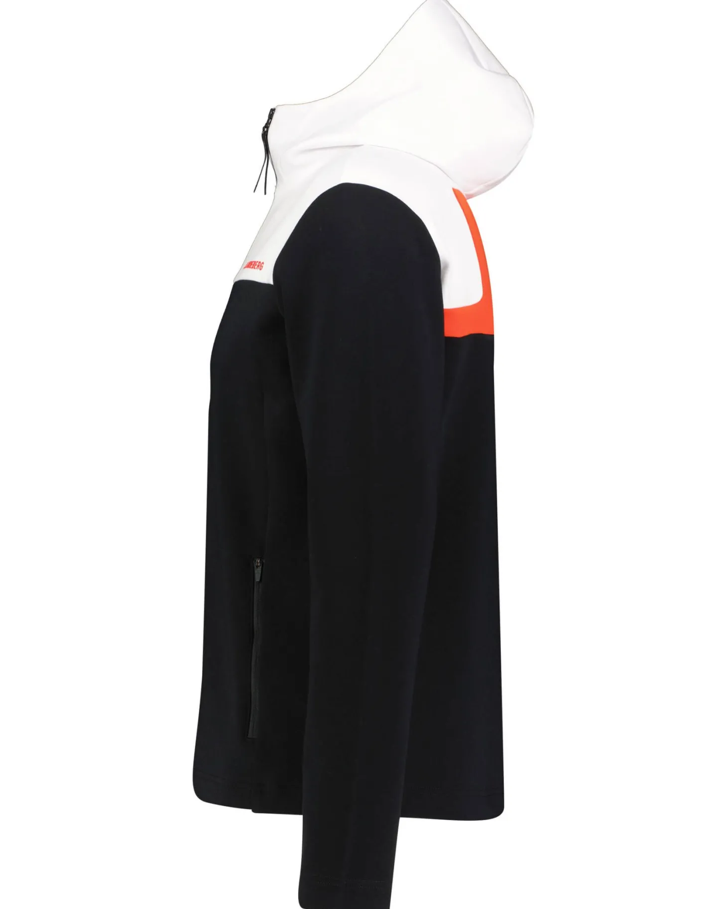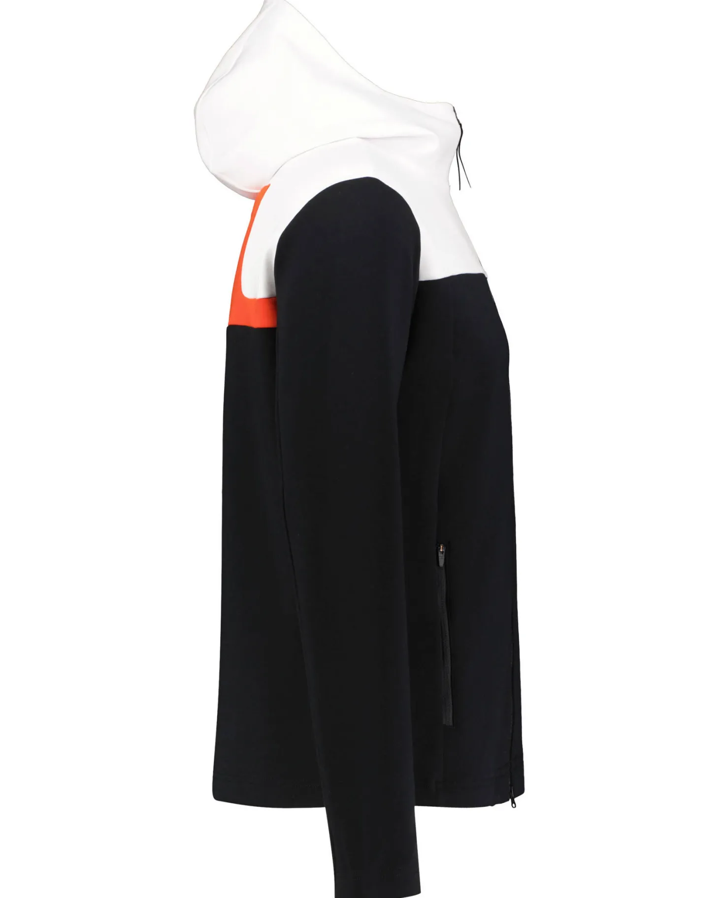 - Hoher Kragen mit fixierter Kapuze