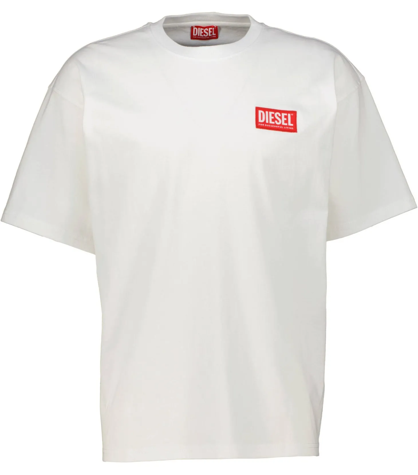 Klassisches T-Shirt von Diesel mit dekorativer Logo-Applikation links vorne.