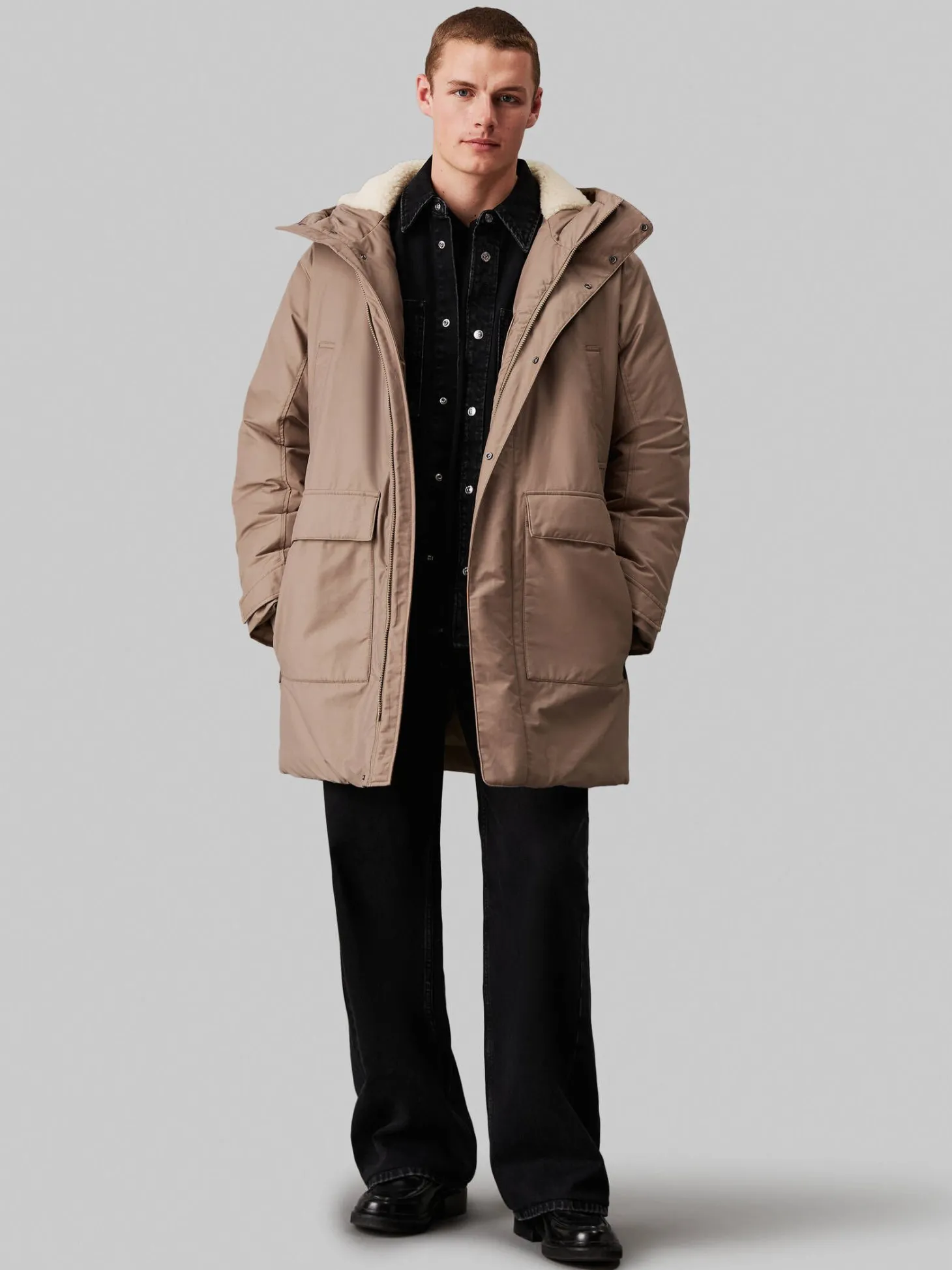 Dieser lange Parka von Calvin Klein Jeans ist einer flauschig gefütterten Kapuze ausgestattet und insgesamt warm gefüttert – ein Must-have für kühles Wetter.