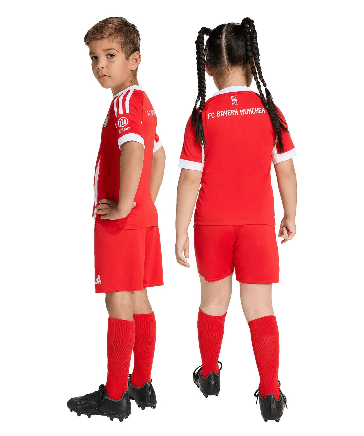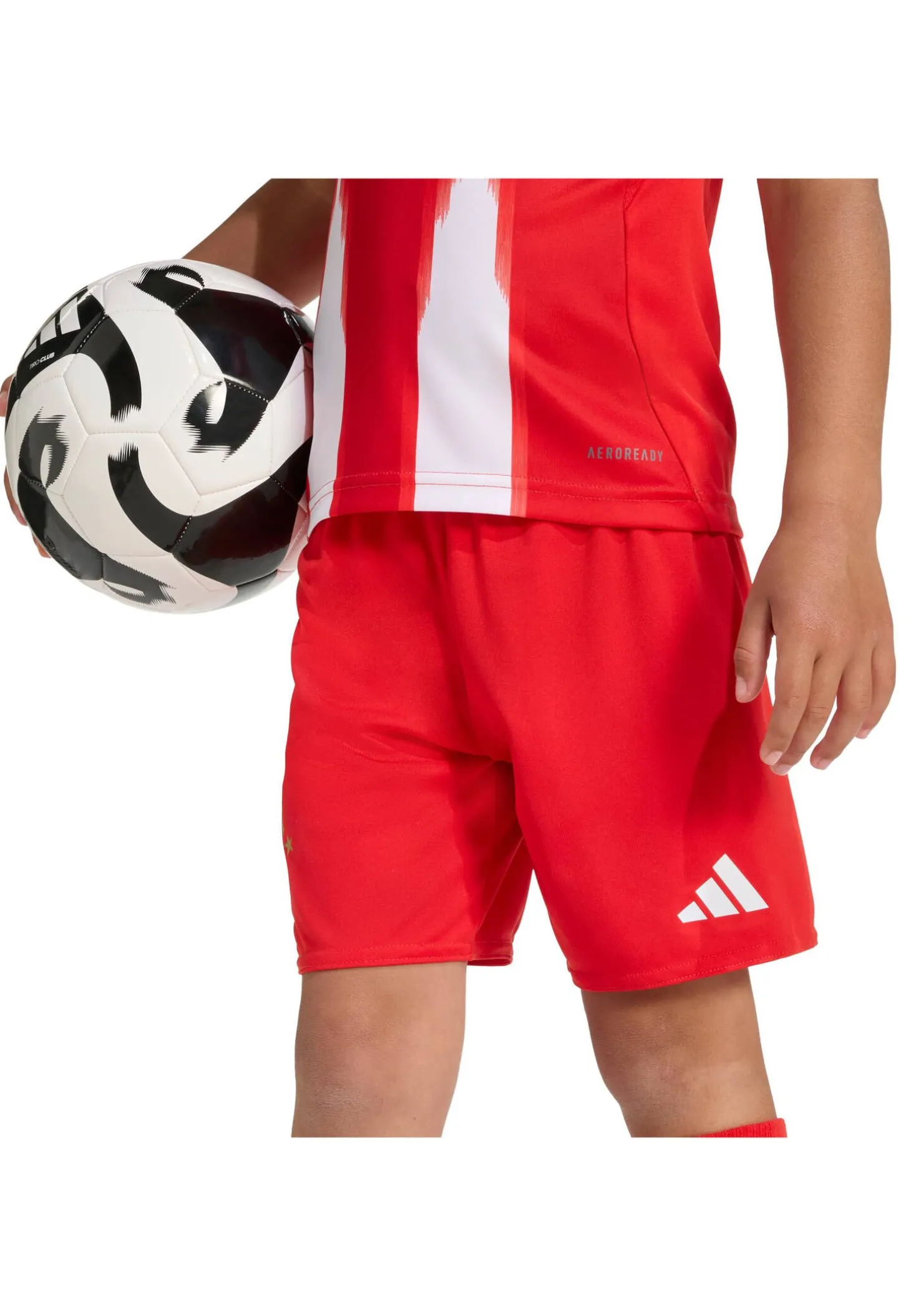 Mit der rot-weißen adidas Heimausrüstung für Kinder im München-Design, inklusive Vereinslogos und feuchtigkeitsabsorbierender AEROREADY Technologie, zeigt dein Nachwuchs echte Fußballbegeisterung – ob beim Kicken oder Feiern.