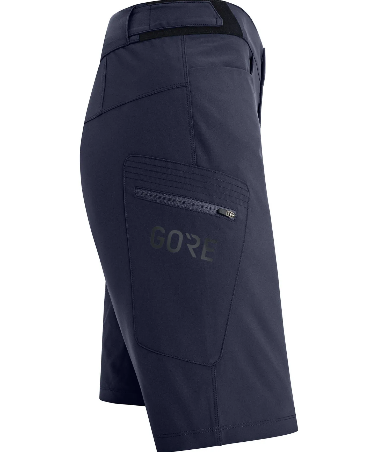 - aufgesetzte Reißverschlusstasche am rechten Oberschenkel